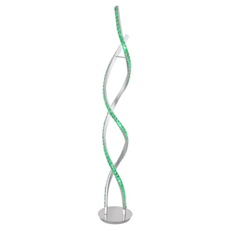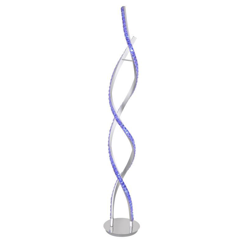 Stojací svítidlo, chrom, broušený hliník, K5 křišťály průhledné, stmívatelné, vypínač, dálkové ovládání, fixace barev, Ø200, V: 1160, LED 24W 230V, 1000lm, 3000K, RGB LED 12W 230V, změna barvy 3000-6000K