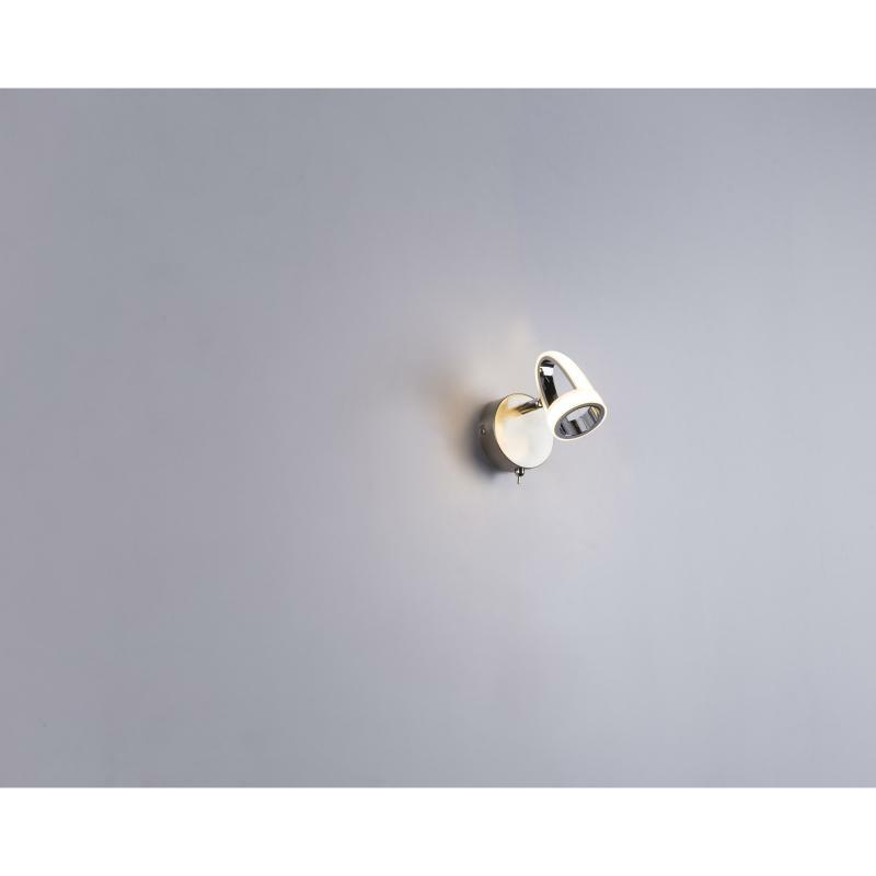Nástěnné svítidlo, kov, nikl, chrom, satin plast, vypínač, ŠxV:90x140, H:150, včetně 1xLED 5W 230V, 310lm, 3000K.