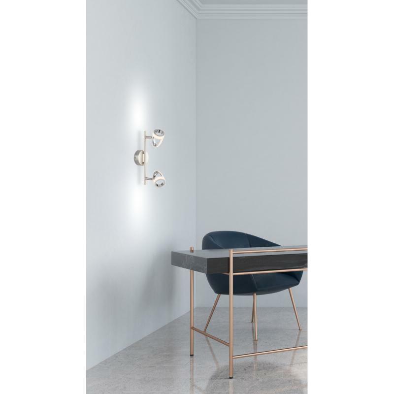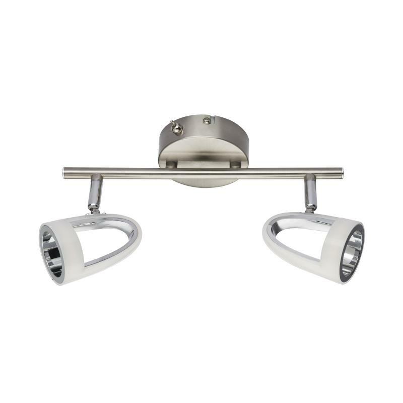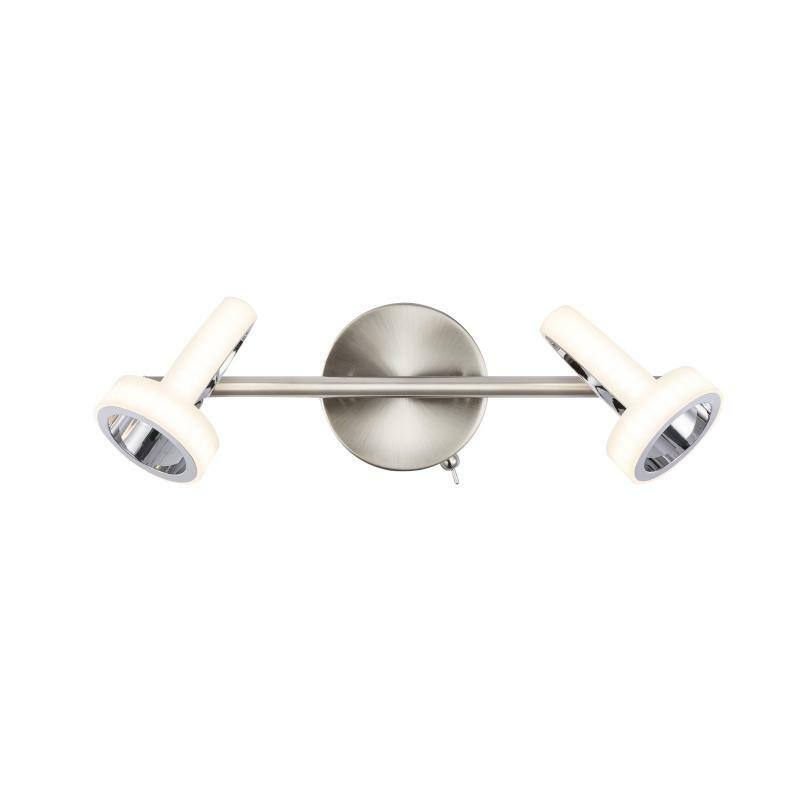 Nástěnné svítidlo, kov, nikl, chrom, satinovaný plast, vypínač, DxV: 300x165, včetně 2xLED 5W 230V, 310lm, 3000K.