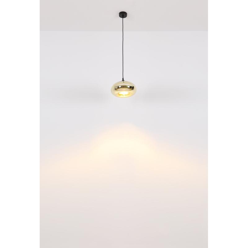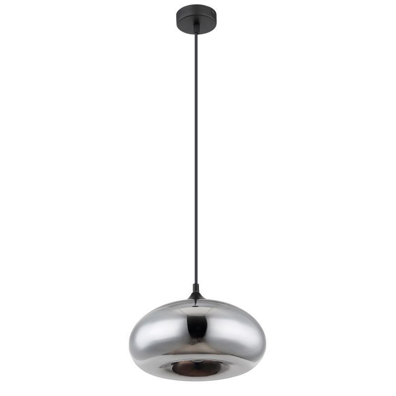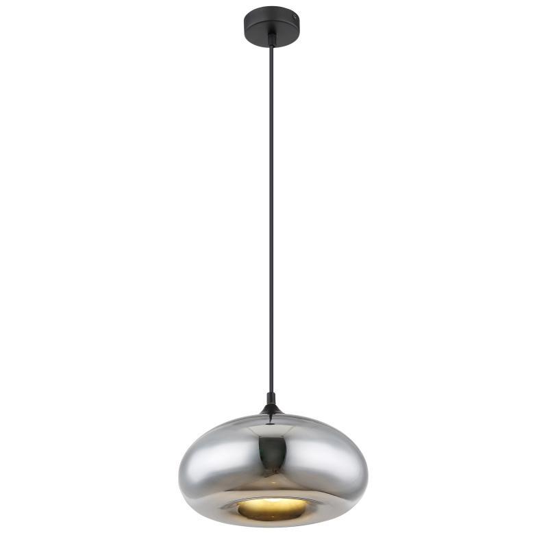 Závěsné svítidlo, kov černý, sklo s chromovým povrchem, Ø280, V: 1200, bez žárovky 1xE27, max. 60W 230V