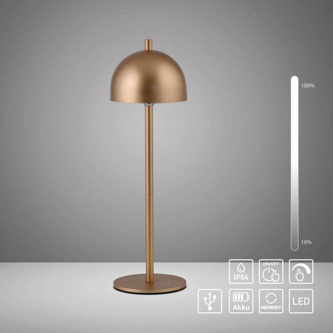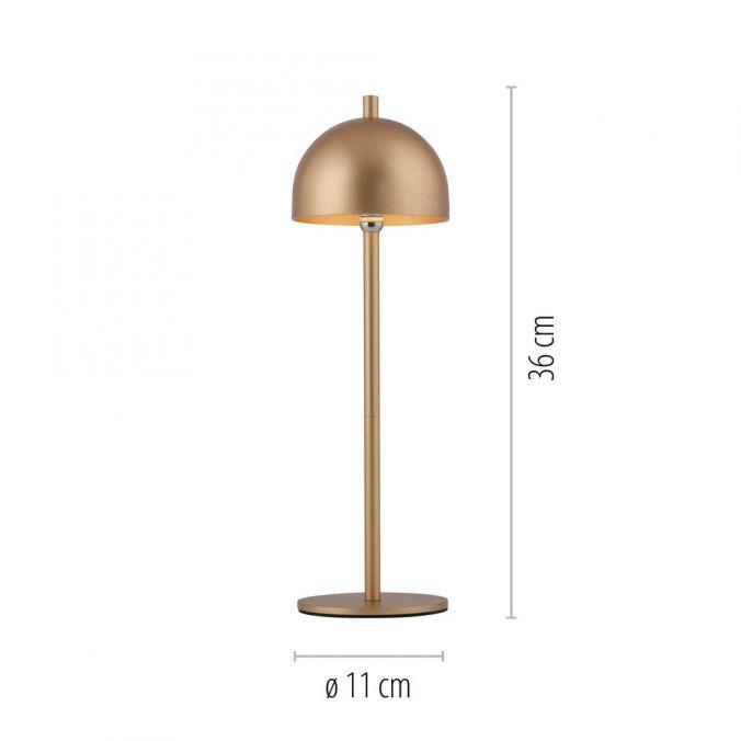 Lampa má moderní tvar s polokulovým stínidlem a štíhlým kovovým tělem v matné zlaté barvě. Konstrukce umožňuje nastavení dvou výšek (230 nebo 360 mm), což zvyšuje její univerzálnost. Magnetický kloub umožňuje snadné natáčení hlavy lampy. Díky kompaktním rozměrům (průměr 110 mm) a hmotnosti 647 g je snadno přenosná.