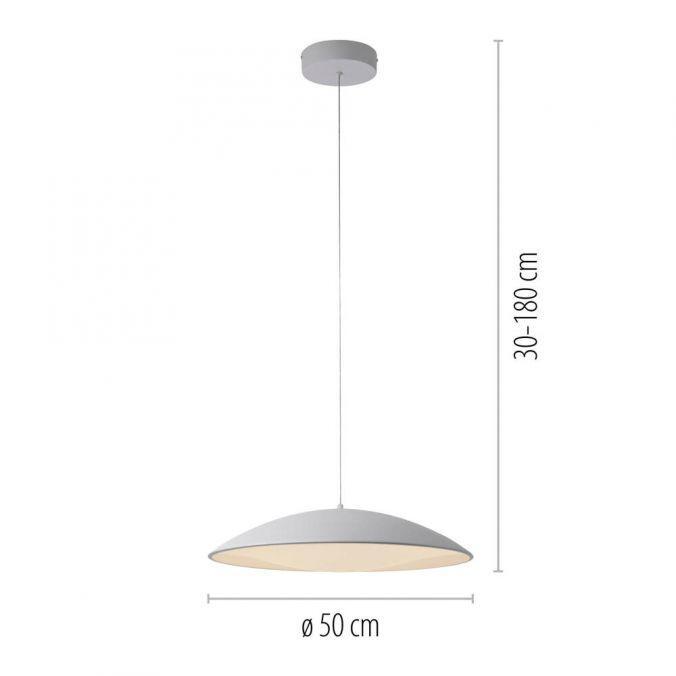 Výška: 1500 mm, Stmívatelné: ano, krokově vypínačem, Hmotnost: 2500g, Průměr: 500mm, Světelný tok: 2300lm, Barva světla: 3000K, Příkon: 23W, Celkový příkon: 25W, Napětí: 220-240V, Patice: LED, Vč. světelného zdroje: ano, Materiál: železo, Barva: bílá, Kolekce: LENTE, Počet světelných zdrojů: 1