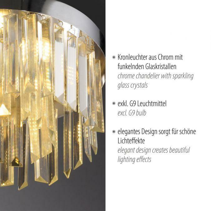 Výška: 155 mm, Hmotnost: 2502g, Průměr: 300mm, Příkon: 5W, Celkový příkon: 20W, Napětí: 220-240V, Patice: G9, Vč. světelného zdroje: ne, Materiál: kov, Barva: chrom, Počet světelných zdrojů: 4