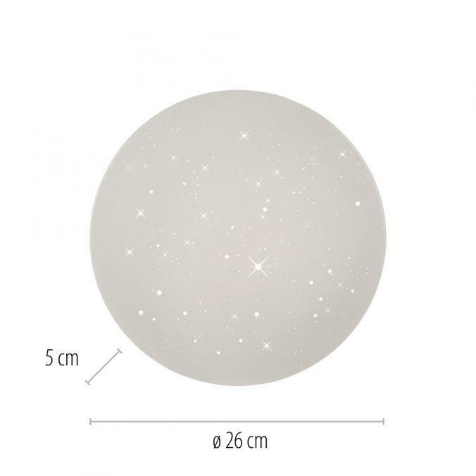 Výška: 55 mm, Hmotnost: 251g, Průměr: 260mm, Světelný tok: 1100lm, Barva světla: 4000K, Příkon: 10W, Celkový příkon: 12W, Napětí: 220-240V, Patice: LED, Vč. světelného zdroje: ano, Materiál: plast, Barva: bílá, Počet světelných zdrojů: 1