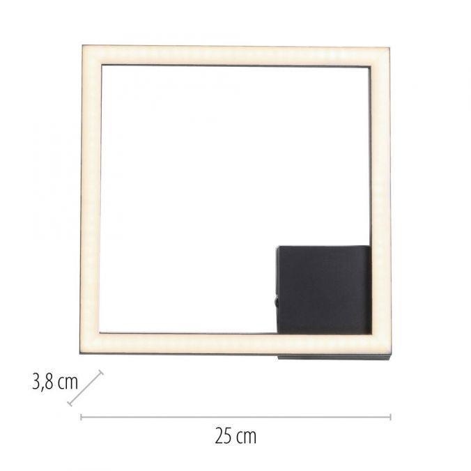 Světlo má čistě čtvercový tvar s rozměry 250 × 250 mm a výškou pouhých 37 mm, což zajišťuje velmi plochý vzhled. Povrch je v matné černé barvě, která podtrhuje moderní a elegantní styl. Konstrukce je z kvalitního plastu, což přispívá k nízké hmotnosti a snadné montáži.