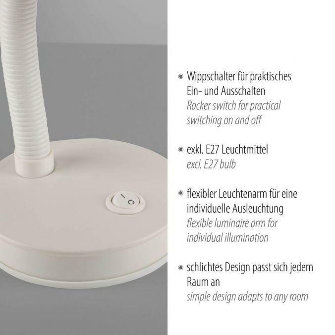 Stolní lampa JUST LIGHT v elegantní bílé barvě je skvělou kombinací jednoduchého designu a maximální funkčnosti. Díky svému univerzálnímu vzhledu je perfektním doplňkem do ložnice, studentského pokoje, dětského pokoje i kanceláře. Její flexibilní krk umožňuje snadné nasměrování světla přesně tam, kde ho potřebujete – ať už při čtení, práci nebo večerním relaxu.