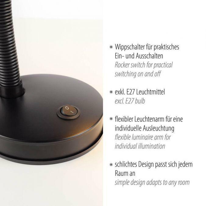Tato stolní lampa je ideální volbou pro všechny, kteří hledají kombinaci praktičnosti, flexibility a minimalistického vzhledu. Umístěte ji na pracovní stůl pro kvalitní osvětlení během práce či studia, nebo na noční stolek jako decentní světlo pro večerní čtení. Díky flexibilnímu krku si světelný paprsek nasměrujete přesně tam, kam potřebujete, což oceníte zejména při dlouhých večerech u knihy nebo při práci na detailních úkolech.