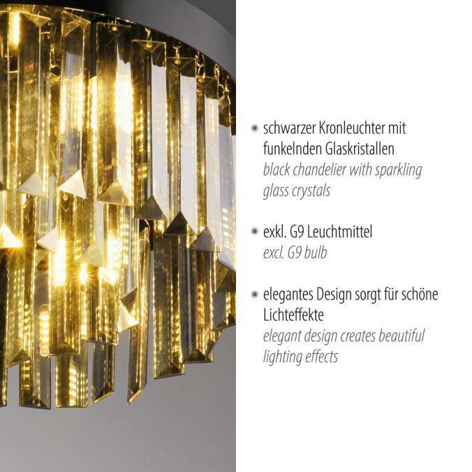 Výška: 155 mm, Hmotnost: 2473g, Průměr: 300mm, Příkon: 5W, Celkový příkon: 20W, Napětí: 220-240V, Patice: G9, Vč. světelného zdroje: ne, Materiál: kov, Barva: černá, Počet světelných zdrojů: 4