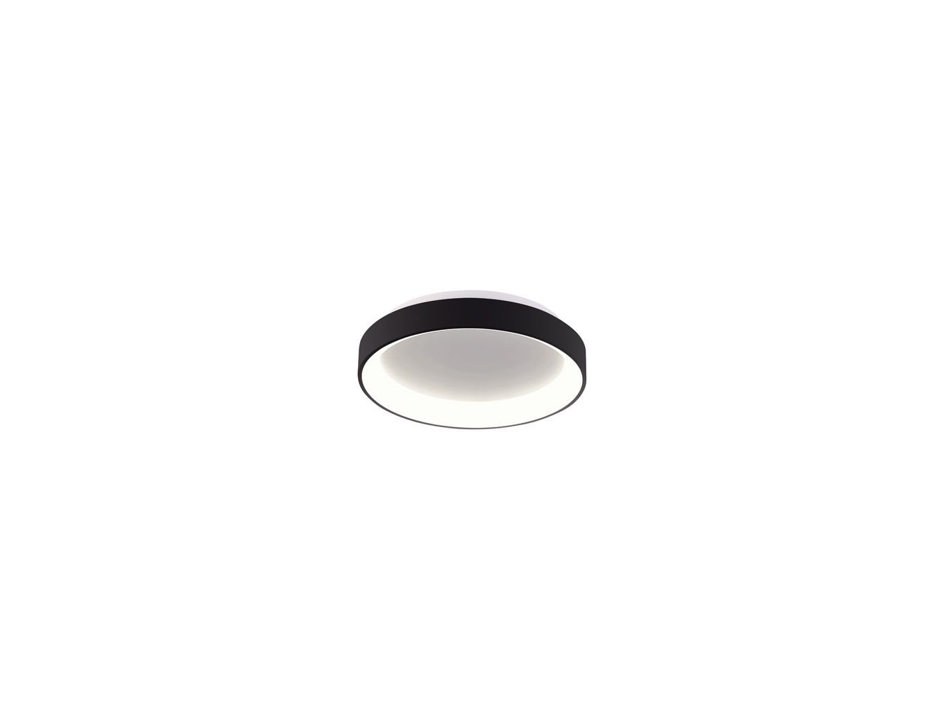 Kruhové stropní světlo s průměrem 280 mm a výškou 60 mm. Tělo je z hliníku v černé barvě (RAL 9017), difuzor z opálového PMMA zajišťuje měkké rozptýlení světla. Minimalistický vzhled vhodný do moderních interiérů.