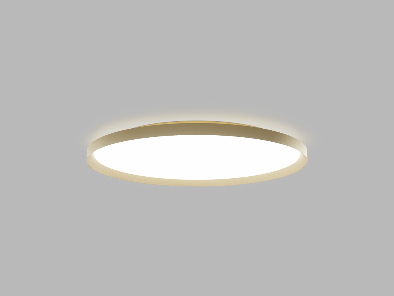 Minimalistický kruhový tvar, kovové tělo v elegantní zlaté barvě (RAL 1036) a opálový difuzor z PMMA podtrhují moderní vzhled svítidla. Výška svítidla je 70 mm, průměr 800 mm. Díky svému designu nenápadně zapadne do různých typů interiérů a zároveň působí luxusním dojmem.