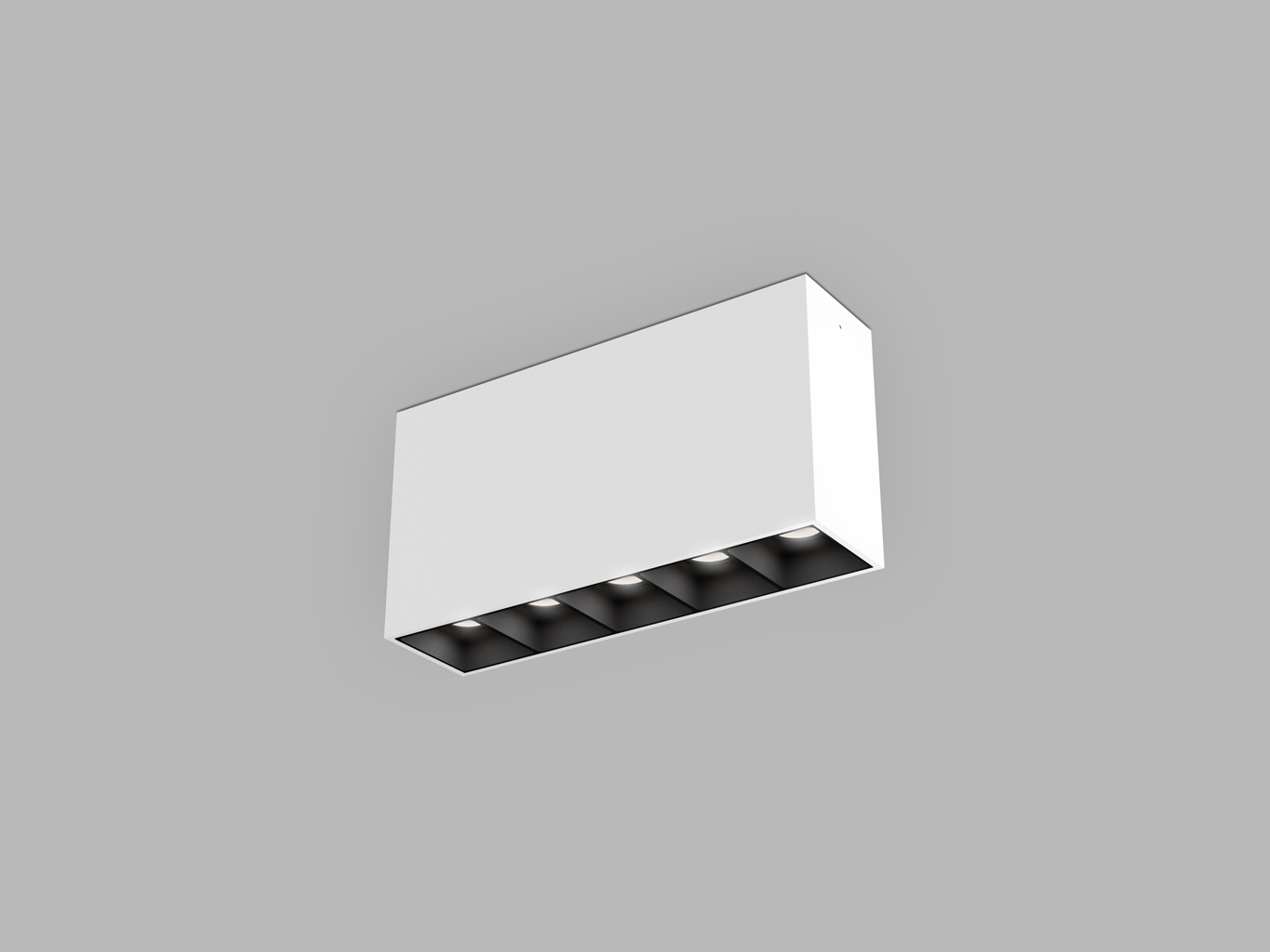 Světlo má moderní hranatý tvar a je vyrobeno z hliníku s polykarbonátovým reflektorem. Povrchová úprava v bílé barvě (RAL 9003) působí čistě a univerzálně, takže snadno zapadne do různých interiérů. Konstrukce s pěti optickými segmenty zajišťuje rovnoměrné rozložení světla a minimalizuje oslnění (UGR < 19).