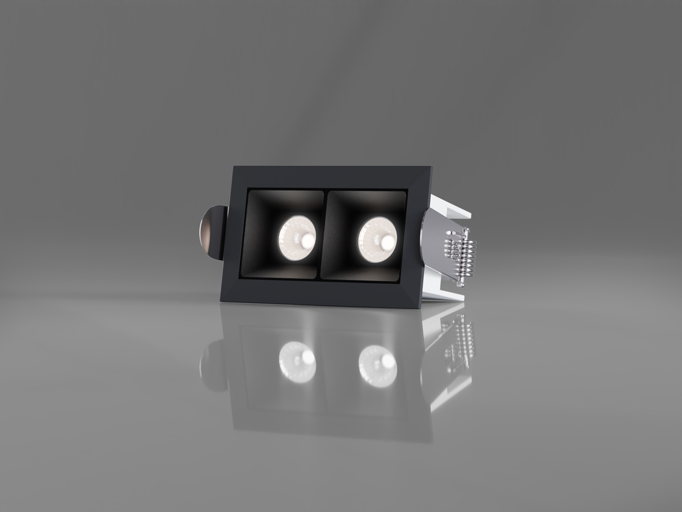 Svítidlo má moderní hranatý tvar a je vyrobeno z hliníku s polykarbonátovým reflektorem. Povrchová úprava v černé barvě (RAL 9005) působí elegantně a nenápadně v každém interiéru. Kompaktní rozměry umožňují instalaci i do menších prostor, kde je požadováno decentní začlenění do stropu.