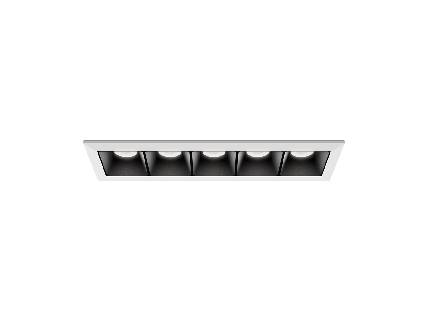 Svítidlo má hranatý, úzký tvar s pěti oddělenými světelnými segmenty. Je vyrobeno z hliníku s bílou povrchovou úpravou (RAL 9003) a polykarbonátovým reflektorem. Minimalistický vzhled a zapuštěná konstrukce umožňují nenápadnou integraci do stropu, což podtrhuje moderní charakter svítidla.