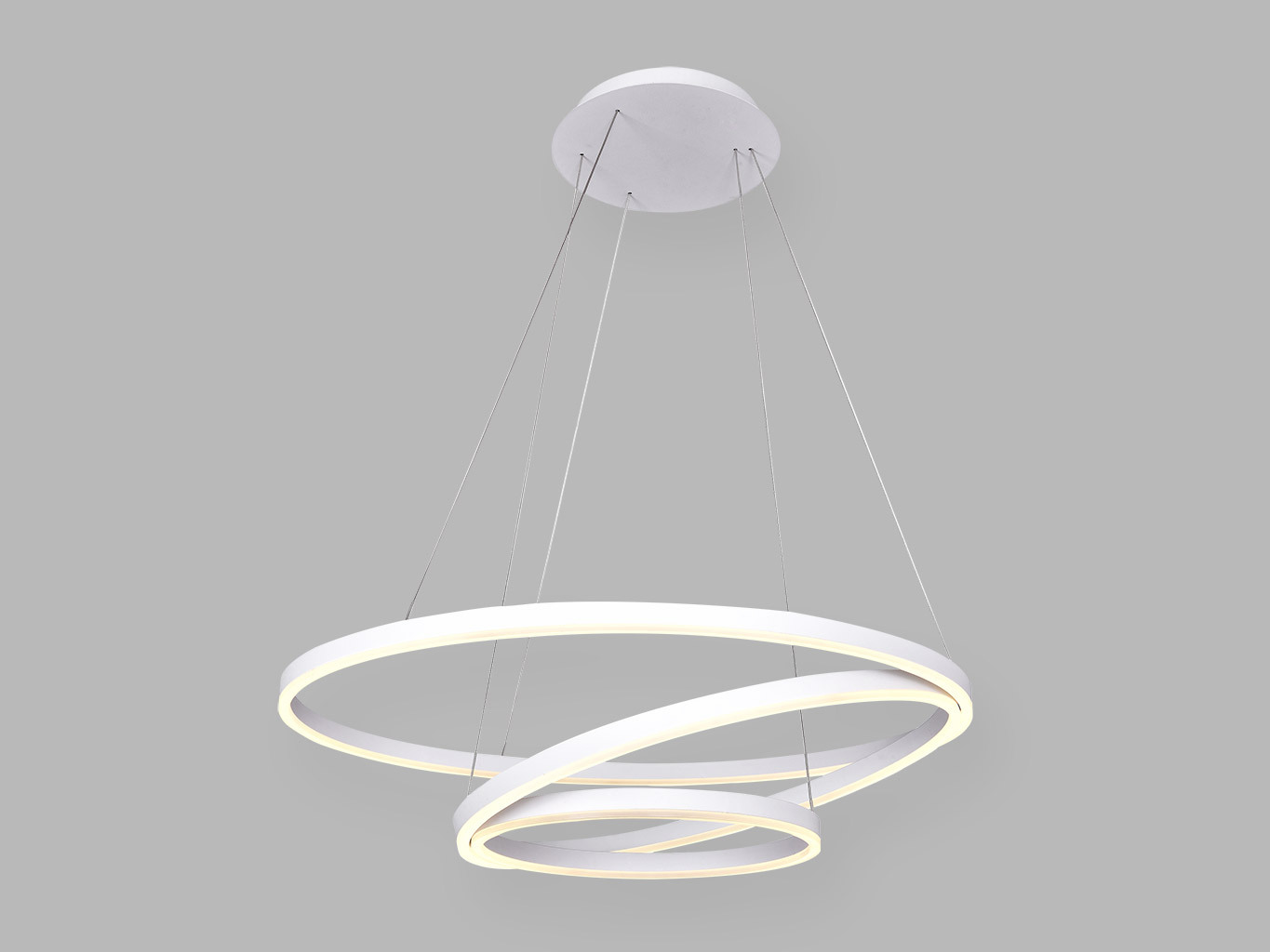 Svítidlo tvoří tři kruhové prstence z bílého hliníku s opálovým difuzorem z PMMA, které zajišťují příjemné rozptýlené světlo bez oslnění. Minimalistický vzhled podtrhuje čistě bílá povrchová úprava (RAL 9003), která snadno zapadne do moderních i reprezentativních prostor.