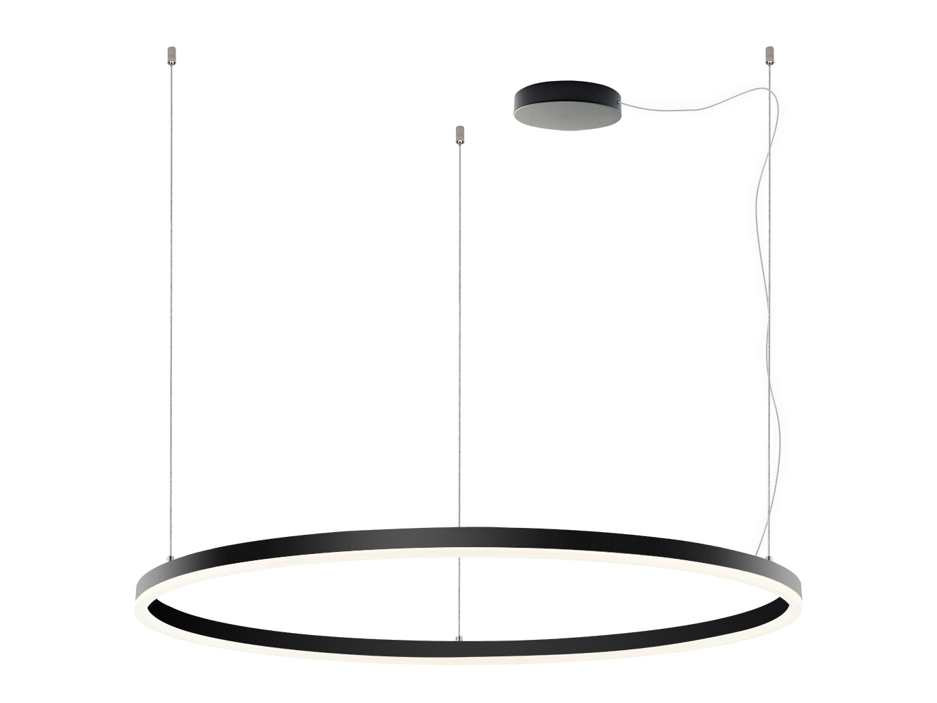 Kruhový tvar svítidla s velmi tenkým profilem působí vzdušně a elegantně. Tělo je vyrobeno z hliníku v matné černé barvě (RAL 9017), světlo je rovnoměrně rozptýleno opálovým difuzorem z PMMA. Minimalistický vzhled podtrhuje moderní styl svítidla.