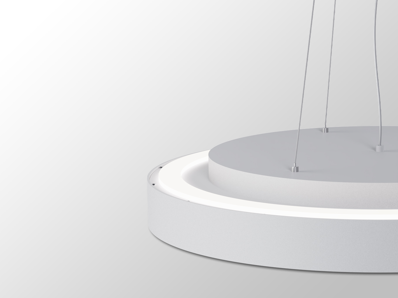 Světlo má výrazný kruhový tvar s průměrem 800 mm a výškou 60 mm, zavěšené na tenkých lankách s možností nastavení délky až 2500 mm. Tělo je vyrobeno z hliníku v bílé barvě (RAL 9003), difuzor je z opálového polykarbonátu. Minimalistický design podtrhuje čisté linie a univerzální vzhled, který snadno zapadne do moderních i klasických interiérů.