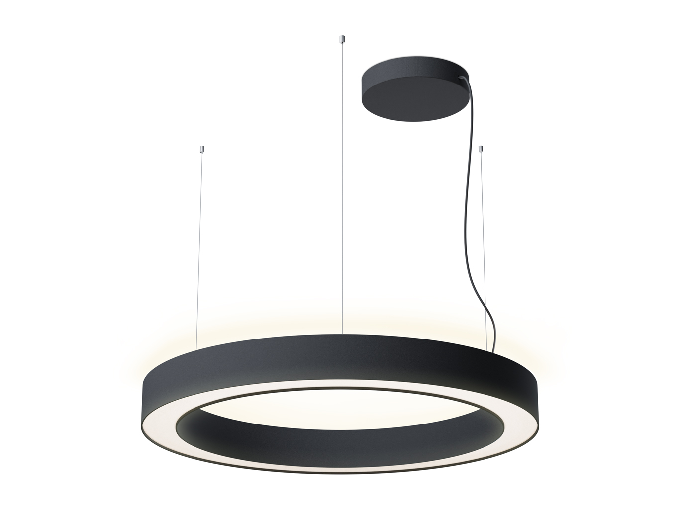 Svítidlo má štíhlý kruhový tvar s průměrem 800 mm a je vyrobeno z hliníku v matné černé barvě (RAL 9017). Prizmatický difuzor z PMMA zajišťuje rovnoměrné rozptýlení světla. Minimalistický design podtrhuje moderní charakter svítidla, které se stane výrazným prvkem každého prostoru.