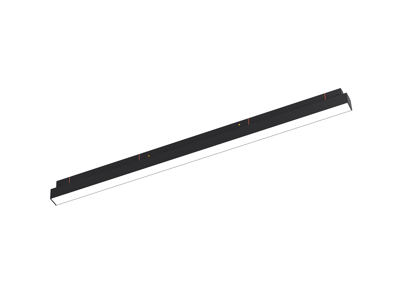 Svítidlo má úzkou a minimalistickou konstrukci s délkou 601 mm, vyrobenou z hliníku a polykarbonátu. Povrch je v elegantní černé barvě (RAL 9017), která působí moderně a snadno se kombinuje s různými interiéry. Difuzní kryt zajišťuje měkké a rovnoměrné rozptýlení světla bez oslnění.