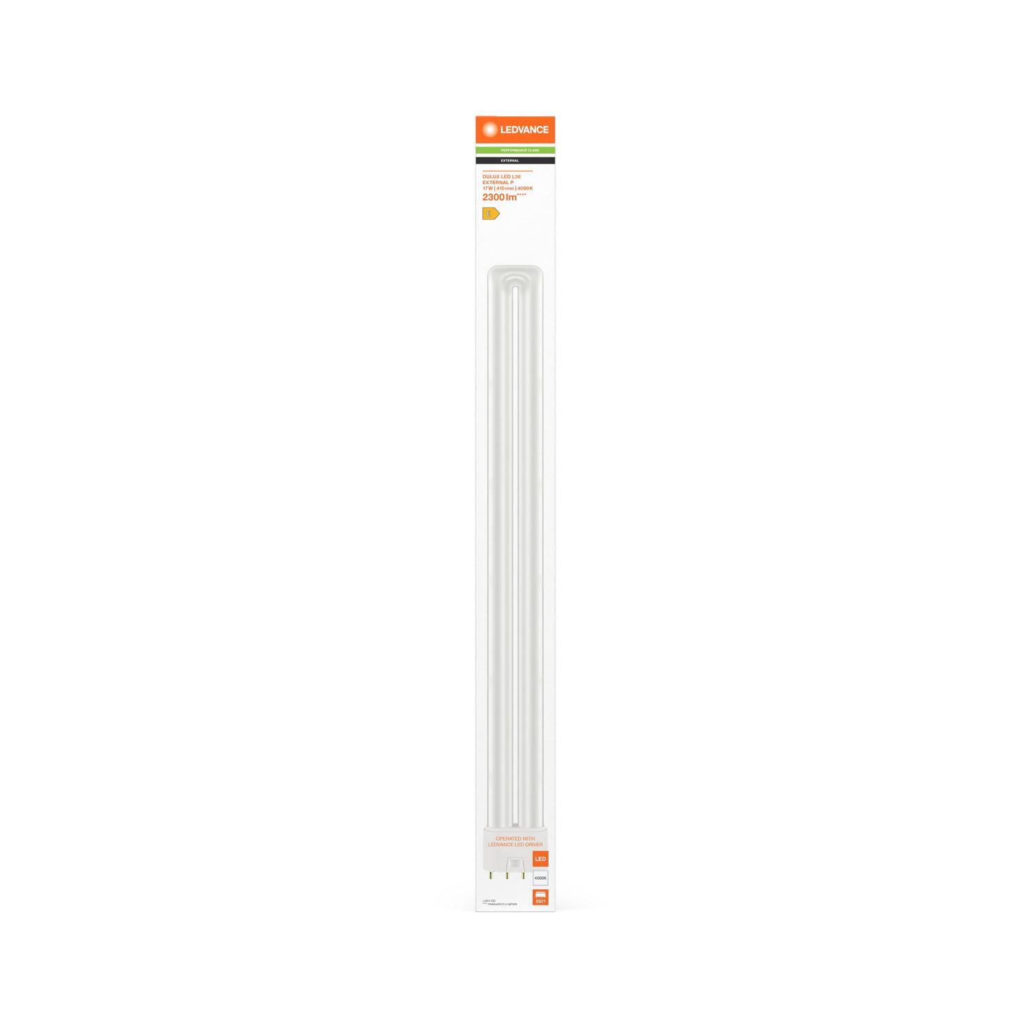 Příkon: 17W, Proud: 450 mA, Napětí: 60 V DC, Teplota barvy: 4000 K, Světelný tok: 2300 lm, Ra: 80, Směrodatná odchylka shody barev: ≤6 sdcm, Startovací čas: < 0.5 s, Náhrada za: 36W, Úhel vyzařování: 140 st., Délka: 416,50 mm, Délka: 416.50 mm, Délka: 410 mm, Průměr: 43,60 mm, Průměr trubice: 17,0 mm, Výška: 43.60 mm, Šířka: 43.60 mm, Hmotnost: 113,00 g, Energetická třída: E, Počet sepnutí: 200000, Životnost: 50000 h, Stmívatelné: ano, Krytí: IP20, Patice: 2G11