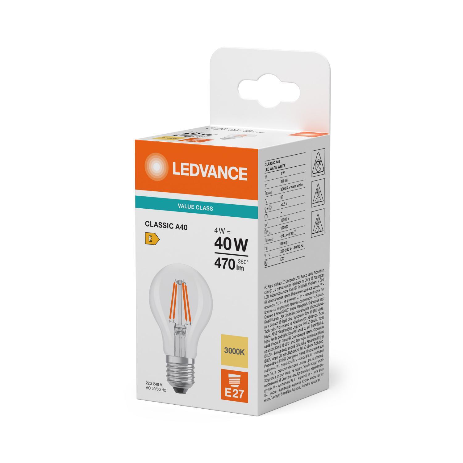 LEDVANCE LED Classic A 40 Filament V 4W 830 Clear E27 4099854485831
