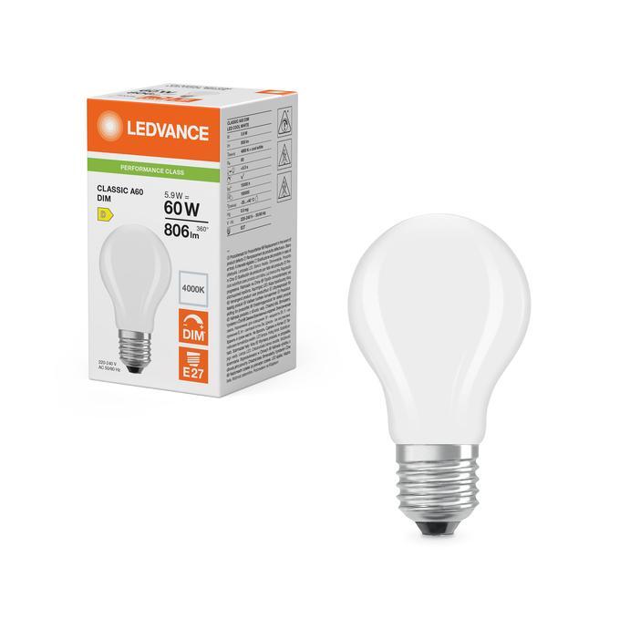 Příkon: 5,9 W, Proud: 38 mA, Napětí: 220-240 V, Teplota barvy: 4000 K, Světelný tok: 806 lm, Ra: 80, Směrodatná odchylka shody barev: ≤6 sdcm, Startovací čas: < 0.5 s, Náhrada za: 60 W, Baňka: matná, Úhel vyzařování: 300 st., Délka: 105,00 mm, Délka: 105.00 mm, Průměr: 60,00 mm, Výška: 60.00 mm, Šířka: 60.00 mm, Hmotnost: 30,00 g, Energetická třída: D, Počet sepnutí: 100000, Životnost: 15000 h, Stmívatelné: ano, Krytí: IP20, Patice: E27