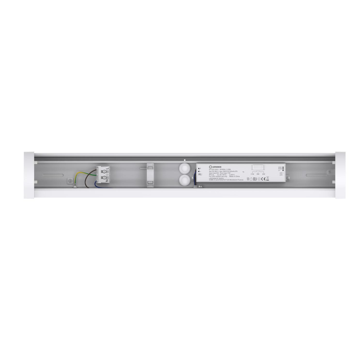 Příkon: 11 W / 8 W / 6 W, Proud: 290-210-150 mA, Napětí: 220-240 V, Teplota barvy: 3000 K / 4000 K, Světelný tok: 1430 lm / 1040 lm / 780 lm, Ra: > 80, Úhel vyzařování: 120 st., Délka: 561,00 mm, Výška: 82,00 mm, Šířka: 82,00 mm, Hmotnost: 800,00 g, Materiál těla: hliník, Barva: bílá, Materiál difuzoru: polykarbonát (PC), Počet sepnutí: 50000, Životnost: 100000 h, Stmívatelné: ne, Nastavitelné: ne, Ochranná třída IK: IK03, Ochranná třída: I, Krytí: IP44, Senzor: Tageslicht, pohybové čidlo, Senzorová technika: Passiv-Infračervená (PIR), Úhel snímání čidla: 120 °, Dosah čidla: 1-3 m, Prahová detekce čidla: 5-35 lx, Spínací čas čidla: 30 s