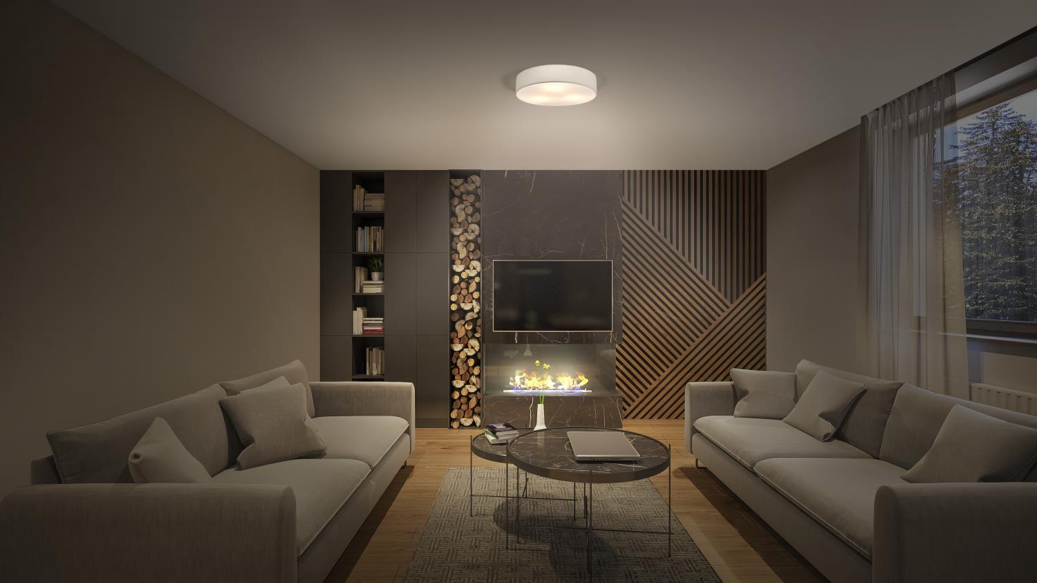 Napětí: 220-240 V, Průměr: 400,00 mm, Výška: 105,00 mm, Hmotnost: 610,00 g, Materiál těla: ocel/textil/PVC, Barva: béžová, Materiál difuzoru: Polystyrol (PS), Ochranná třída: I, Krytí: IP20