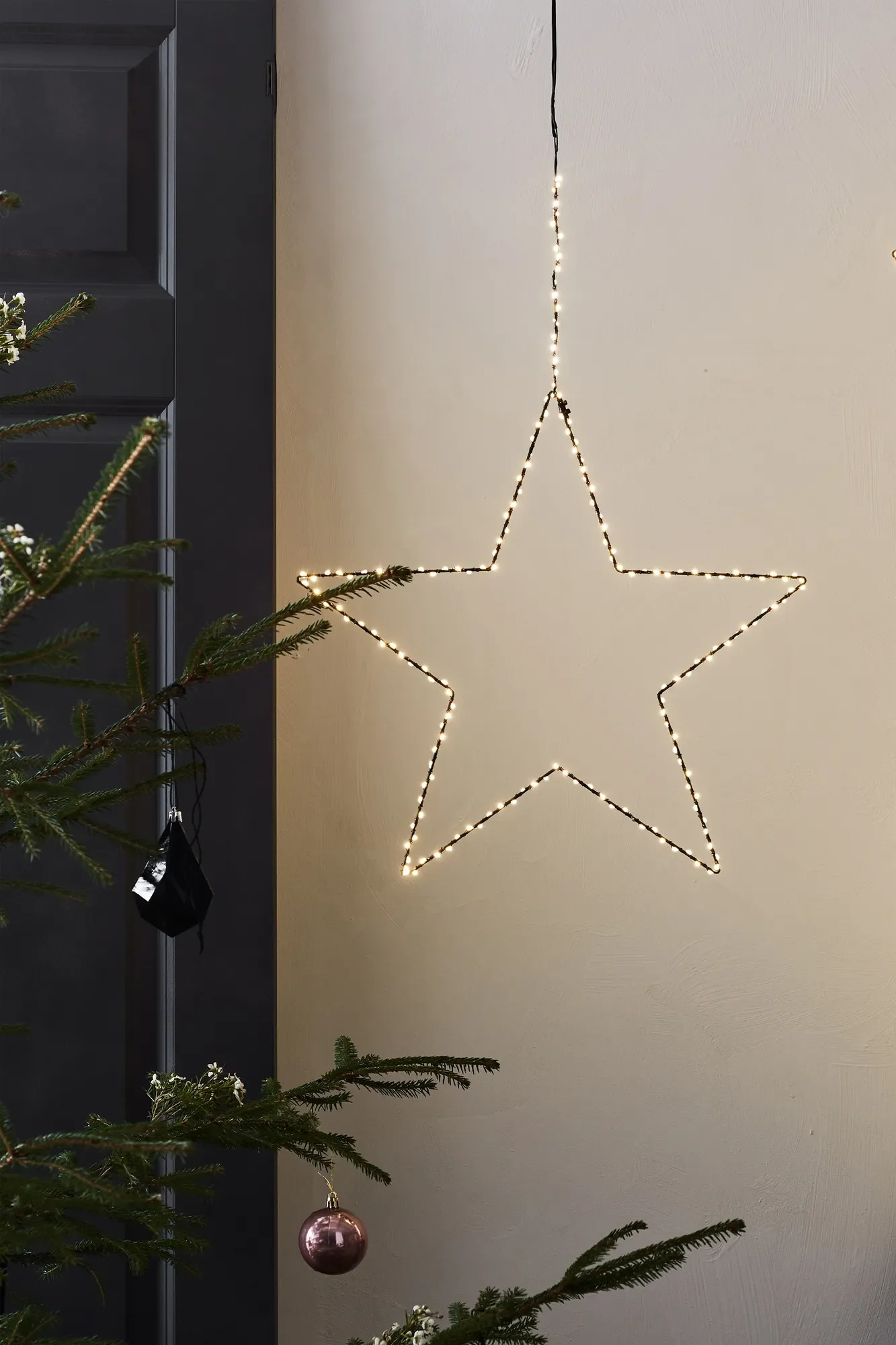Závěsná hvězda Markslöjd Alpha v černé barvě je designový prvek, který promění každý interiér v útulné a slavnostní místo. Její minimalistická konstrukce z kovu o průměru 45 cm zdobí integrovaný světelný řetěz s 200 teplými bílými LED diodami, které zaručují příjemnou záři pro váš domov. Díky decentnímu provedení je vhodná nejen do oken, ale i na stěnu nebo jako výrazná dekorace v prostoru.