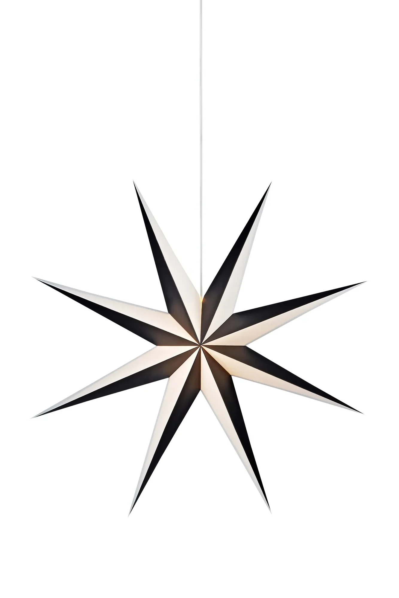 Závěsná hvězda Markslöjd Alva v elegantní černo-bílé kombinaci je stylovým doplňkem nejen pro vánoční období, ale i pro moderní interiér během celého roku. Díky svému 3D efektu a preciznímu zpracování z kartonu a PVC působí hvězda vzdušně a zároveň výrazně doplní každý prostor, například okno, vstupní halu nebo obývací pokoj.