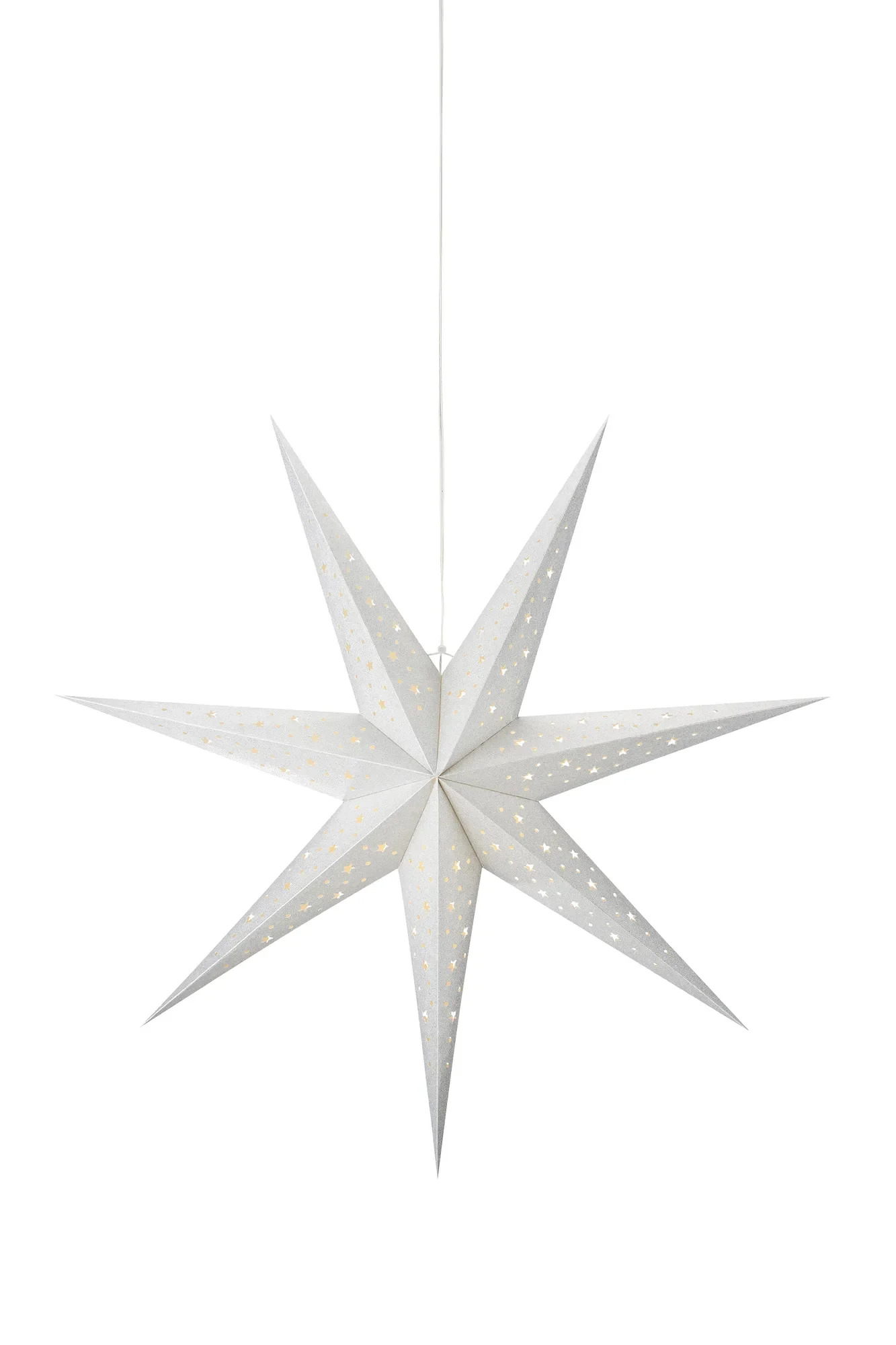 Závěsná hvězda Markslöjd Blank v elegantním stříbrném provedení je ikonickým designovým doplňkem pro váš interiér během vánočního období i zimních měsíců. Je vyrobena z kvalitního papíru, její průměr činí působivých 75 cm a díky perforovanému vzoru vytváří po rozsvícení jemnou světelnou hru, která vnáší do prostoru pocit klidu a pohody.