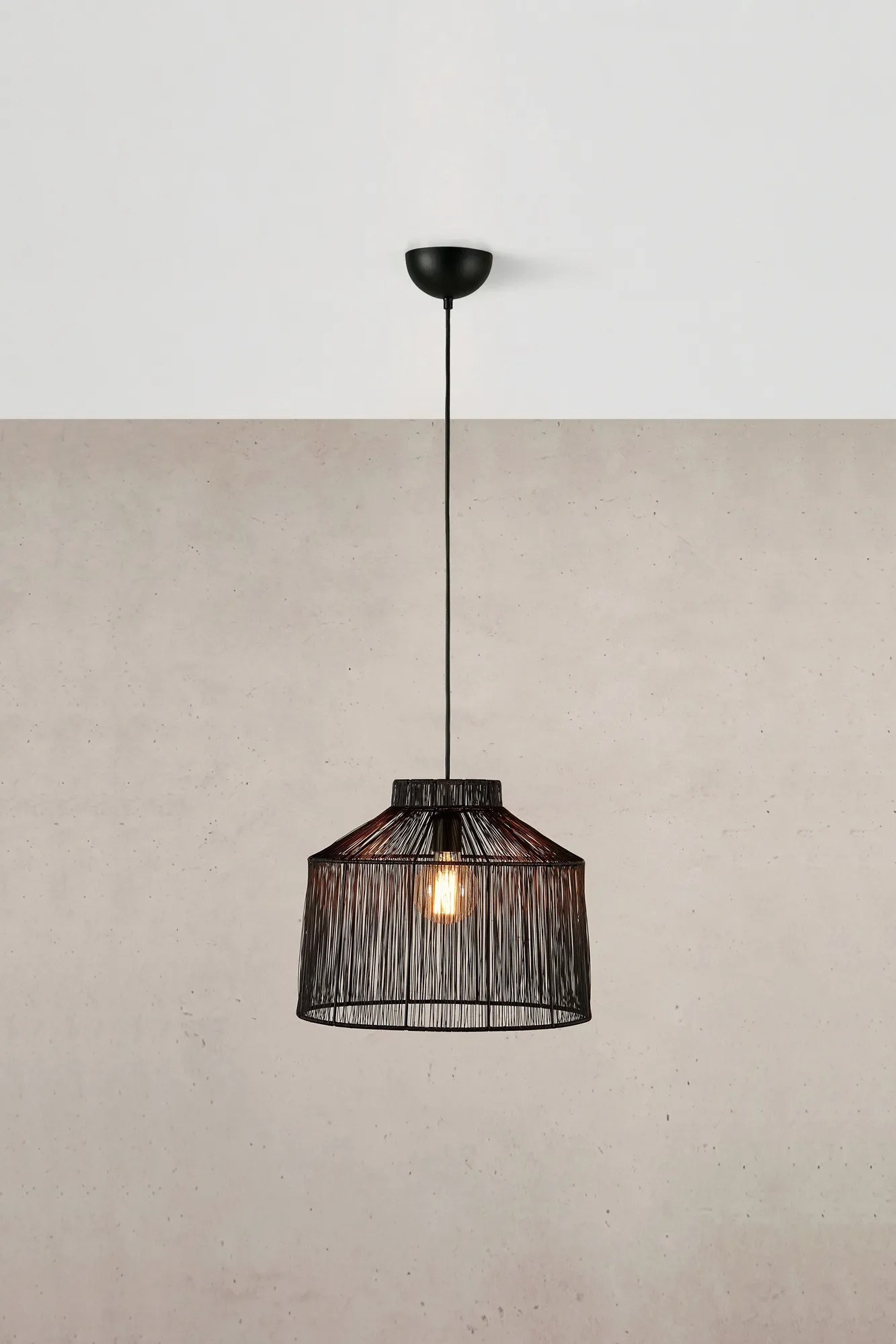 Závěsné svítidlo Markslöjd Capanna v elegantním matném černém provedení je dokonalým příkladem propojení moderního stylu a funkčnosti. Jeho stínidlo tvoří dekorativní kovové dráty, které nejen zvýrazňují tvar svítidla, ale také vytvářejí unikátní světelné efekty a zajímavé stíny v prostoru. Minimalistický vzhled je podtržen černým textilním kabelem a stropní krytkou ve stejném odstínu.