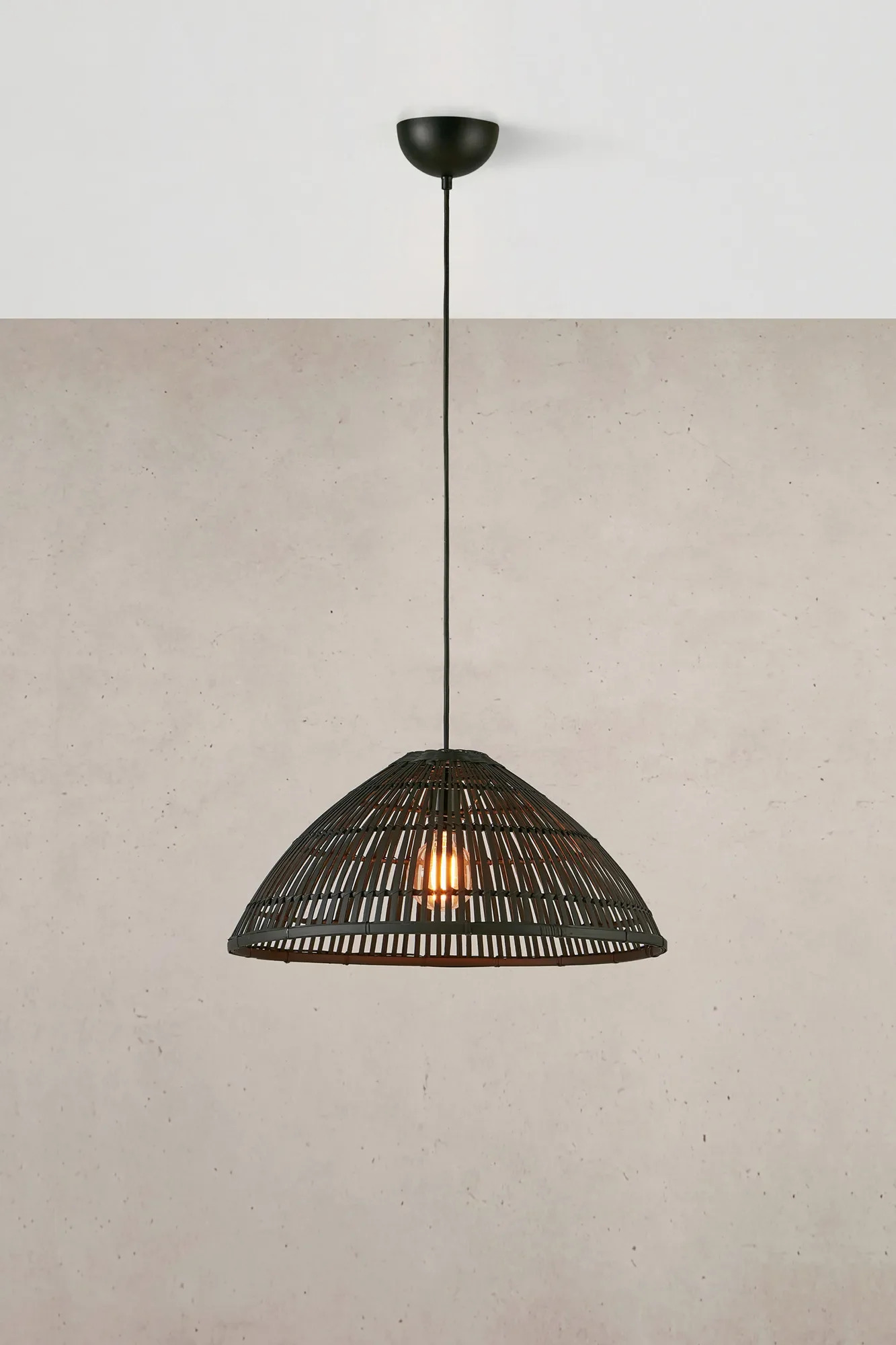 Závěsné svítidlo Markslöjd Capello v černé barvě představuje stylovou kombinaci přírodních materiálů a moderního designu. Každý kus je pečlivě ručně pletený z matného černého bambusu, což zaručuje originální vzhled a vytváří v interiéru jedinečnou hru světla a stínu. S průměrem 58 cm je ideální volbou nad kulatý stůl do jídelny, do obývacího pokoje nebo stylové kavárny. Černý textilní kabel dlouhý 150 cm a stropní kryt v černé barvě podtrhují celkový dojem a snadno zapadnou do každého moderního nebo rustikálního prostoru.