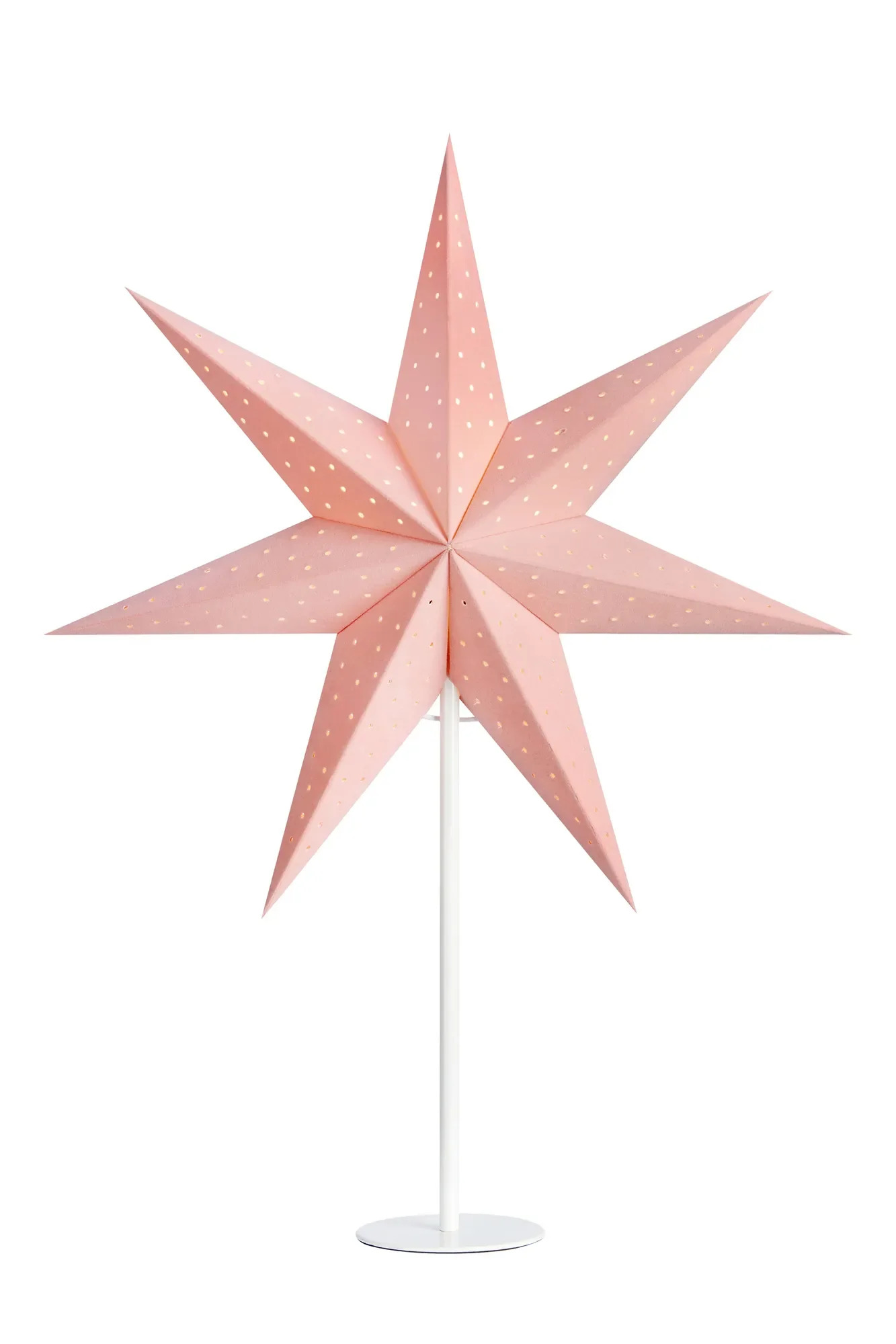 Objevte kouzlo švédského designu s dekorativní stolní hvězdou Markslöjd Clara v hravé růžové barvě s jemným sametovým povrchem. Tento designový kousek je ideální volbou pro slavnostní výzdobu oken, dětských pokojů i moderních interiérů hledajících originální akcent. Hvězda o průměru 45 cm je upevněna na elegantním bílém kovovém podstavci, který dodává celé lampě výšku 65 cm.