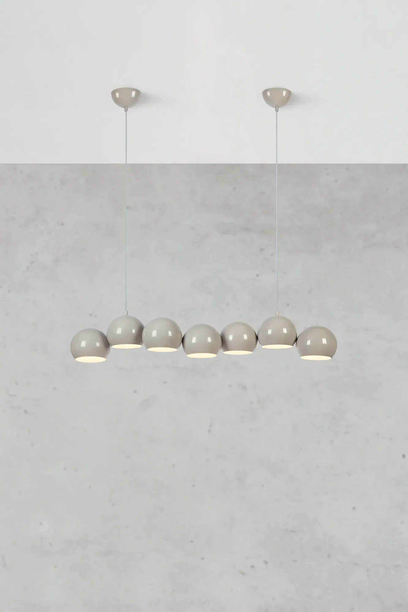 Svítidlo Cupolo je zavěšeno na dvou lankách, která zajišťují dokonale symetrické uchycení a čistý vzhled. Precizní kovové zpracování podtrhuje kvalitu a dlouhou životnost celého produktu. Povrchová úprava v odstínu greige snadno zapadne do moderních i skandinávsky laděných interiérů.