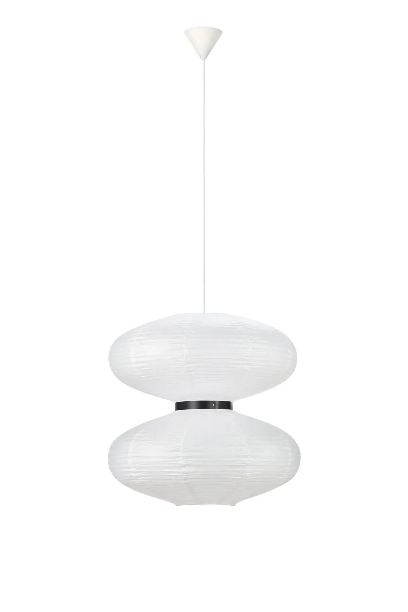 • Design: Dvě stínidla z bílého rýžového papíru (průměr 60 cm) pro jemně rozptýlené světlo