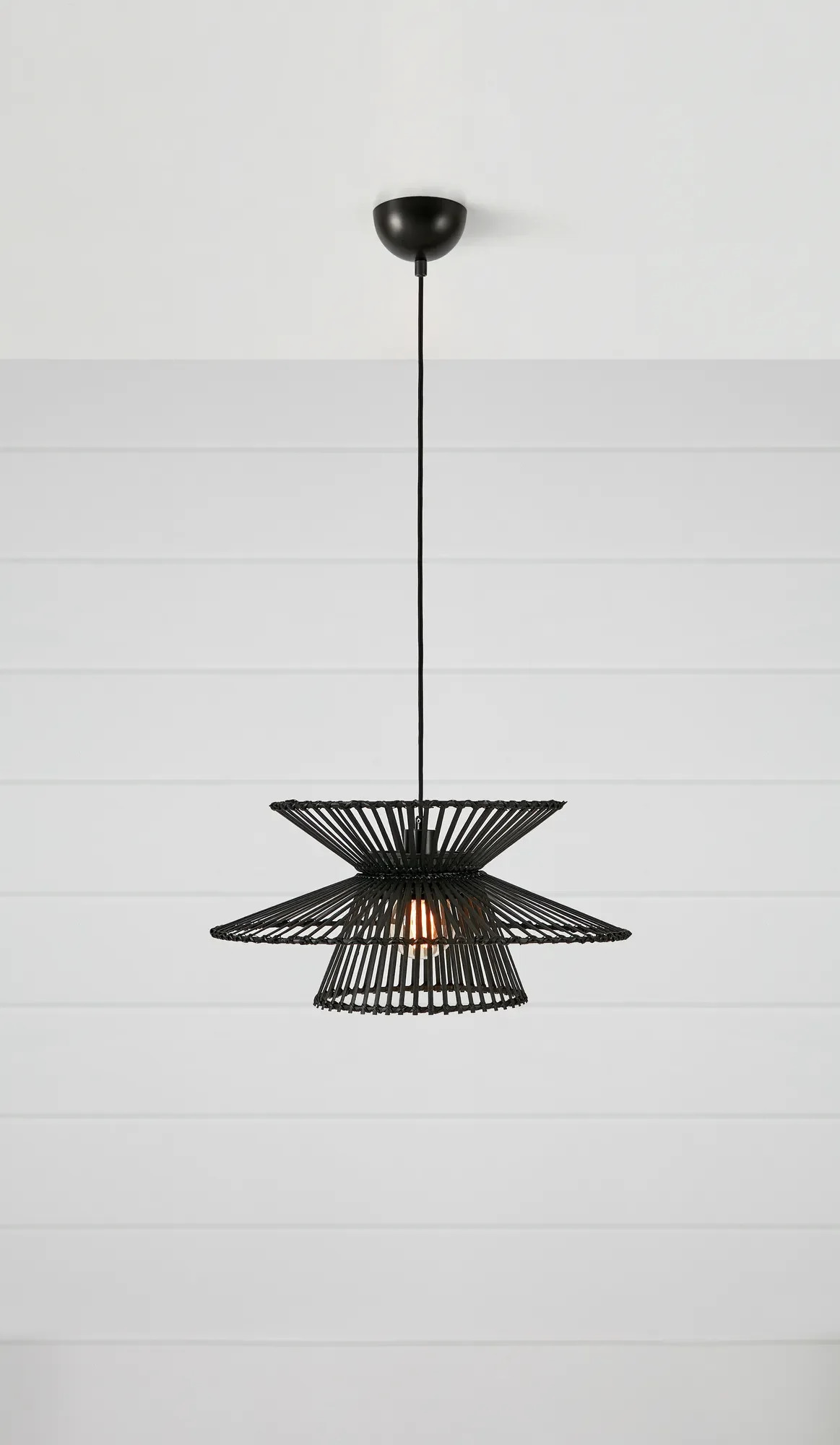 Závěsné svítidlo Markslöjd Duplici v černé matné barvě přináší do vašeho interiéru moderní rustikální styl a nevšední atmosféru. Ručně vyrobené stínidlo z bambusu v kombinaci s kovovými detaily umožňuje měnit tvar podle vaší nálady nebo aktuálních potřeb prostoru. Díky originální konstrukci zůstává světelný zdroj viditelný a vytváří tak poutavé světelné i stínové efekty – zvláště při použití dekorativní žárovky.