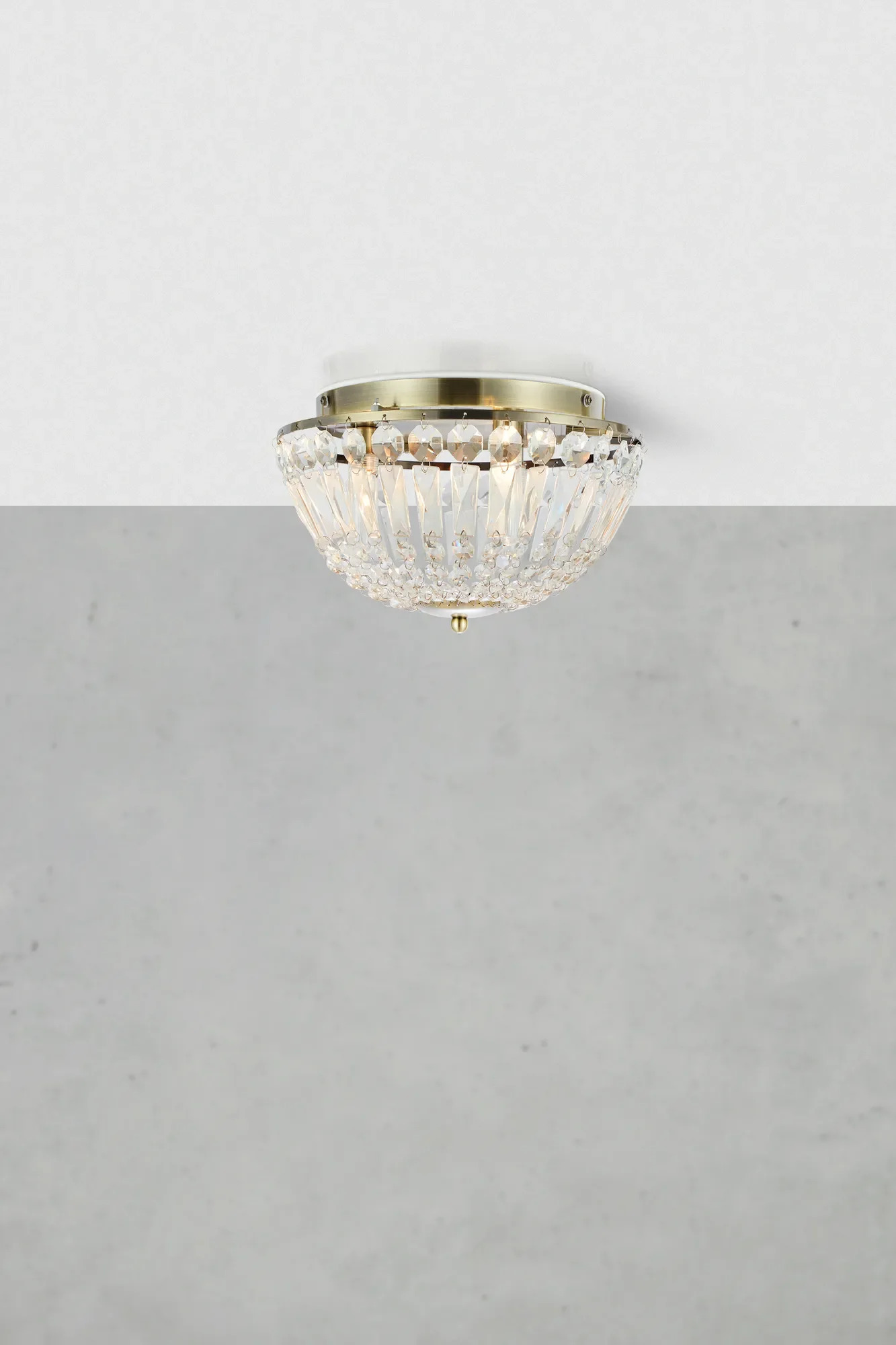 Stropní svítidlo Markslöjd Estelle v provedení staromosaz s křišťálovými prvky představuje stylový prvek, který vašemu interiéru dodá punc elegance a luxusu. Je navrženo speciálně pro použití v koupelně a svým decentním designem v duchu počátku 20. století kombinuje funkčnost s estetickou hodnotou. Průzračné krystaly rozptylují světlo do prostoru a vytvářejí působivé světelné efekty, které zvýrazní krásu vašeho koupelnového interiéru.