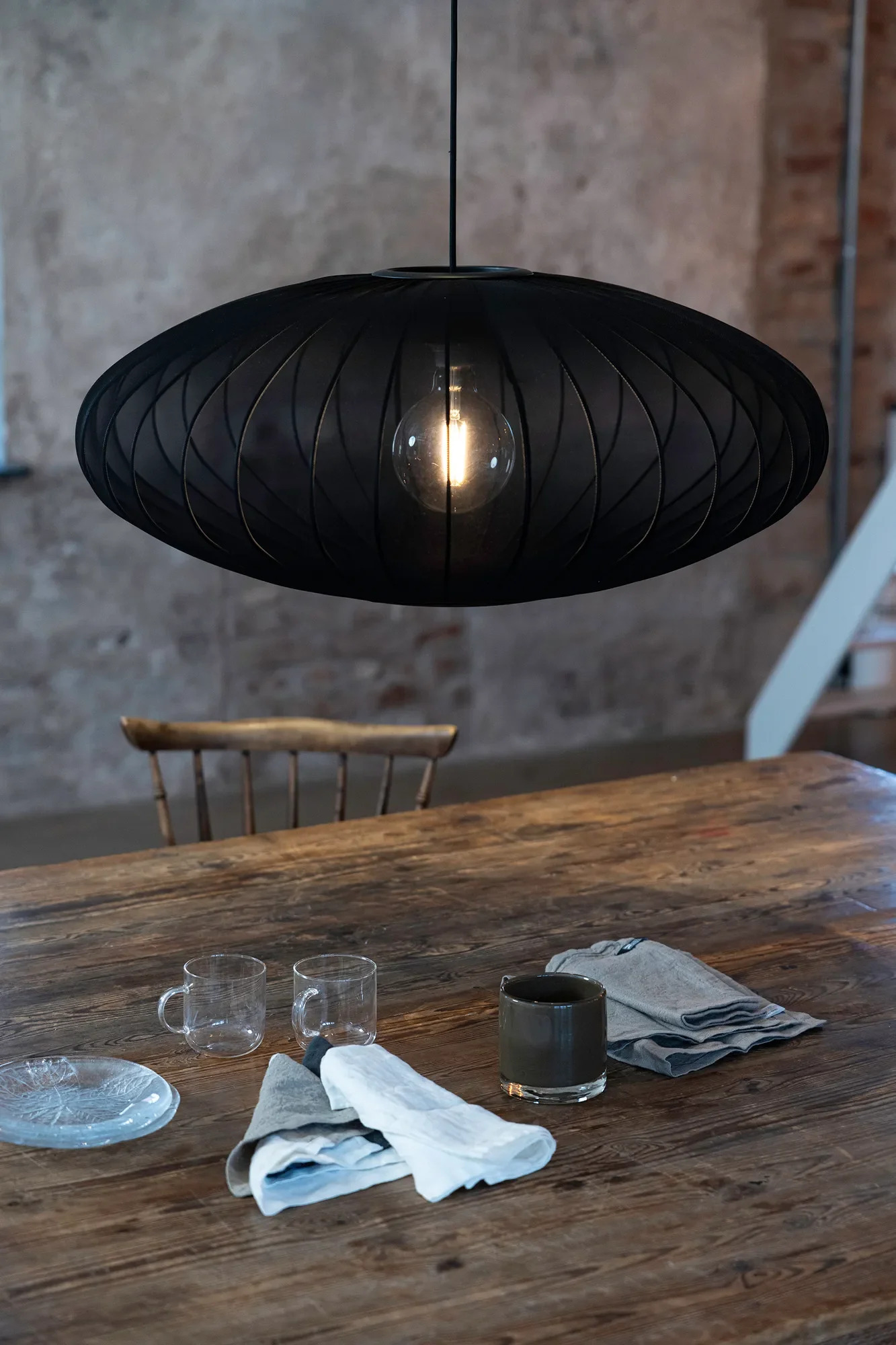 Závěsné svítidlo Markslöjd Florence v černé barvě je výrazný designový prvek, který vynikne zejména ve větších obytných prostorech. S impozantním průměrem 75 cm a kvalitním textilním stínidlem nabízí tento lustr nejen příjemné rozptýlené světlo, ale i estetický zážitek. Svítidlo se skvěle hodí do obývacího pokoje, jídelny nebo ložnice, kde podpoří atmosféru a dodá interiéru dotek elegance.
