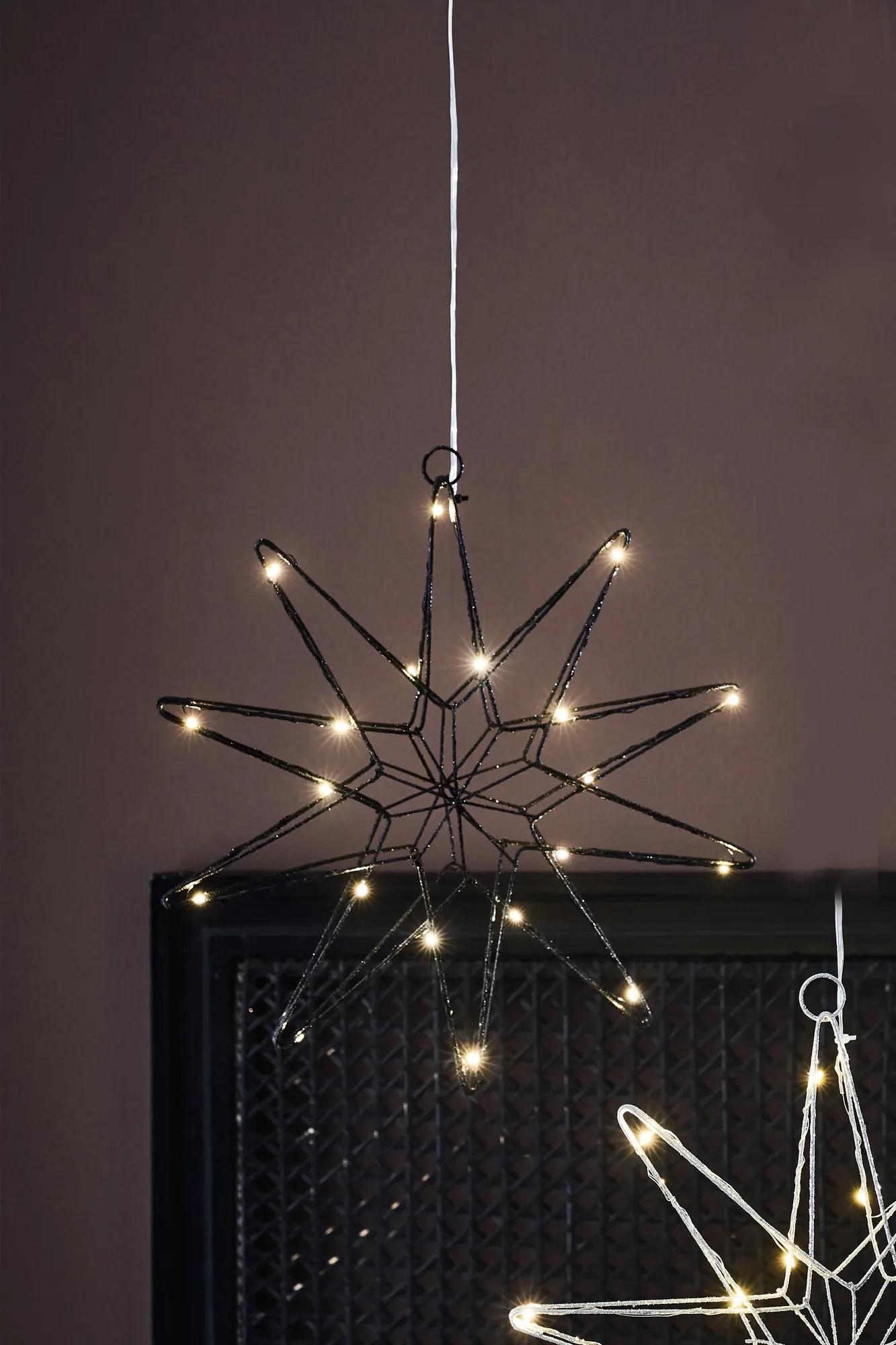 Vneste do svého interiéru kouzlo Vánoc s elegantní závěsnou hvězdou Markslöjd Gleam v černém provedení. Kovová konstrukce z černého železa tvoří čistý geometrický tvar, který vyniká ve dne i v noci. Hvězda je vybavena 20 teplými bílými LED diodami, které vytváří příjemnou a útulnou atmosféru – ideální nejen do okna, ale i na zeď či nad stůl.