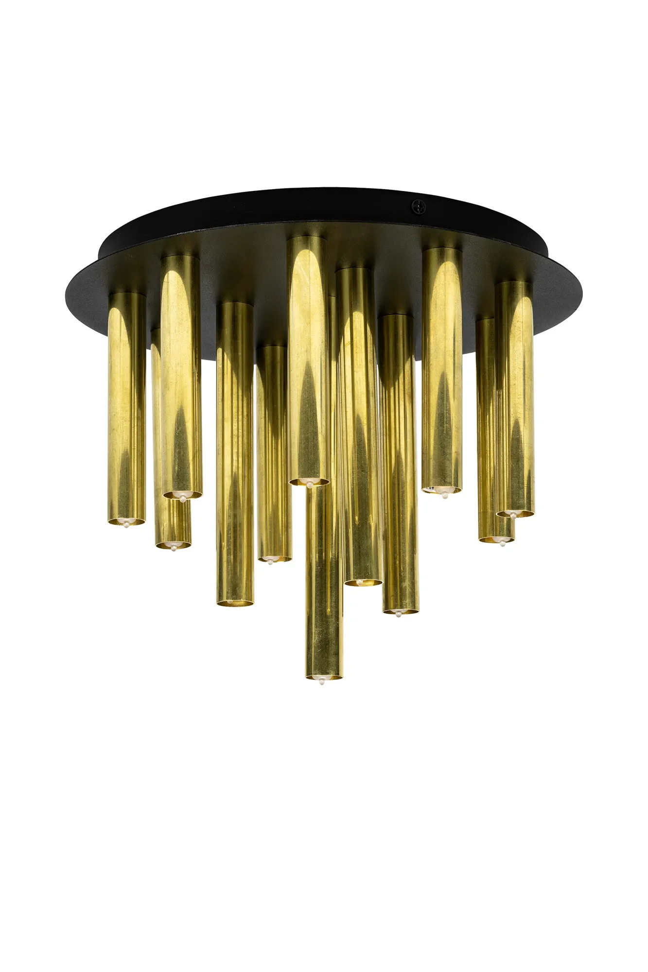 Markslöjd Gocce je stropní bodové svítidlo, které se stává dominantním prvkem každého moderního interiéru. S třinácti žárovkami umístěnými v různě dlouhých mosazných válcích přináší nejen vysokou svítivost, ale i jedinečný estetický zážitek. Povrchová úprava z neopracované surové mosazi nechává svítidlo přirozeně patinovat, což zajišťuje originální vzhled s každým rokem používání.