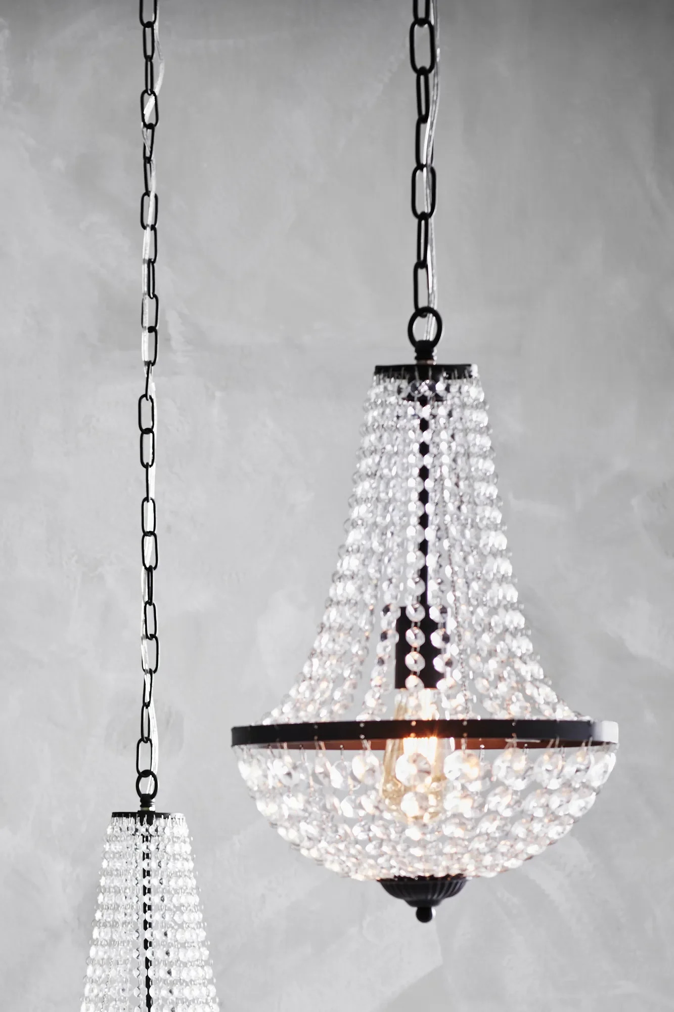 Lustr Markslöjd Gränsö v černém provedení přináší do vašeho interiéru nadčasovou eleganci a luxusní atmosféru. Křišťálové ověsy v kombinaci s tmavým kovem poutají pozornost a zajišťují jedinečný rozptyl světla. S průměrem 30 cm je ideální nejen do obývacího pokoje či nad jídelní stůl, ale také do menších místností, kde vynikne jeho subtilní, avšak výrazný design.