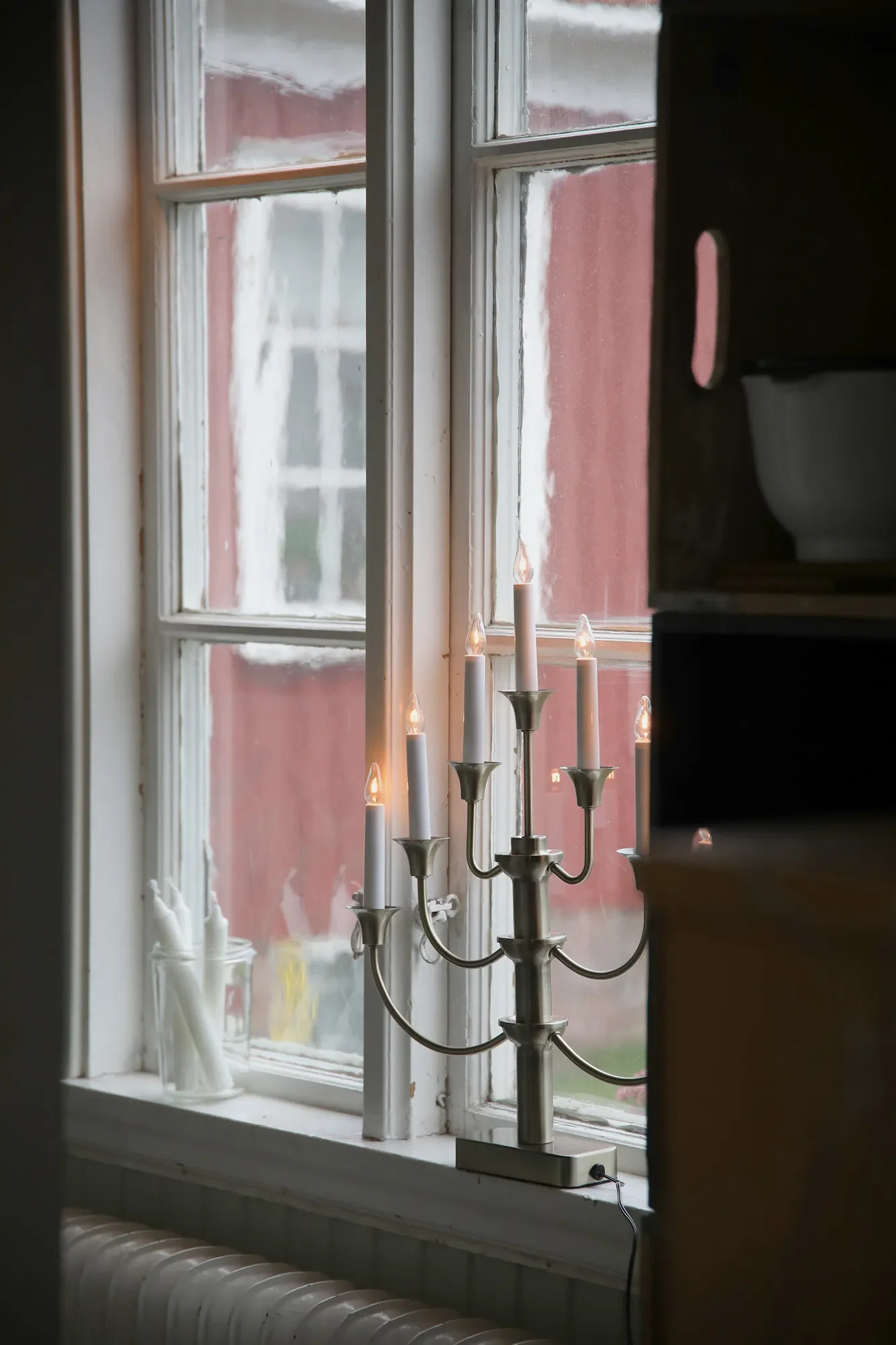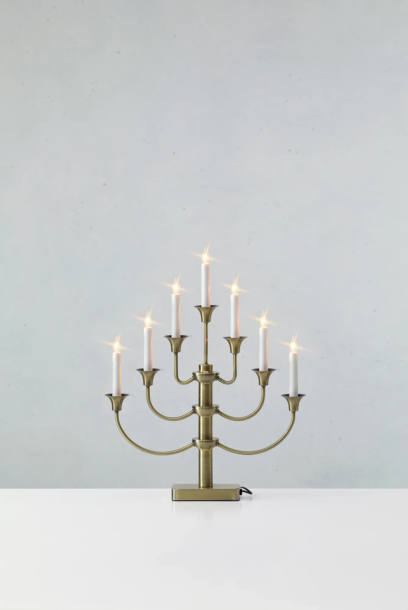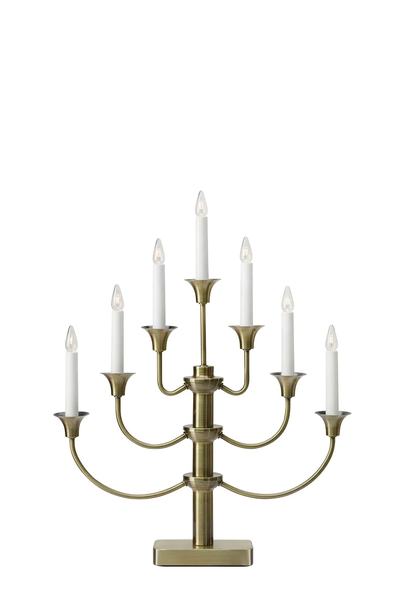Výška: 530 mm, Šířka: 60 mm, Délka: 420 mm, Délka kabelu: 2000 mm, Hmotnost: 1000 g, Příkon: 21 W, Počet světelných zdrojů: 7, Barva světla: teplá bílá, Světelný tok: 60 lm, Krytí: IP20, Napětí: 220-240V, Patice: E10, Barva: starožitná mosaz, Materiál: kov/plast, Kolekce: GYLLING