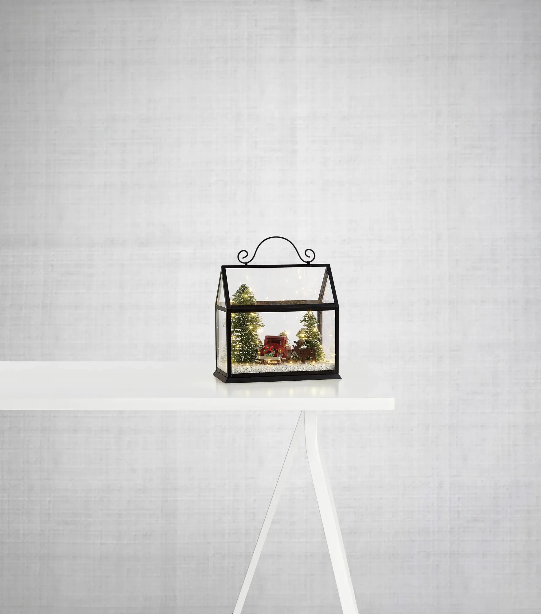 Tato dekorace vyniká svou univerzálností – můžete ji umístit kamkoliv bez nutnosti zástrčky díky bateriovému napájení. Jemné LED osvětlení vykouzlí příjemnou atmosféru nejen během Vánoc, ale i v zimních měsících. Skleněné stěny zajišťují maximální efekt světelných bodů a detailů uvnitř domečku.
