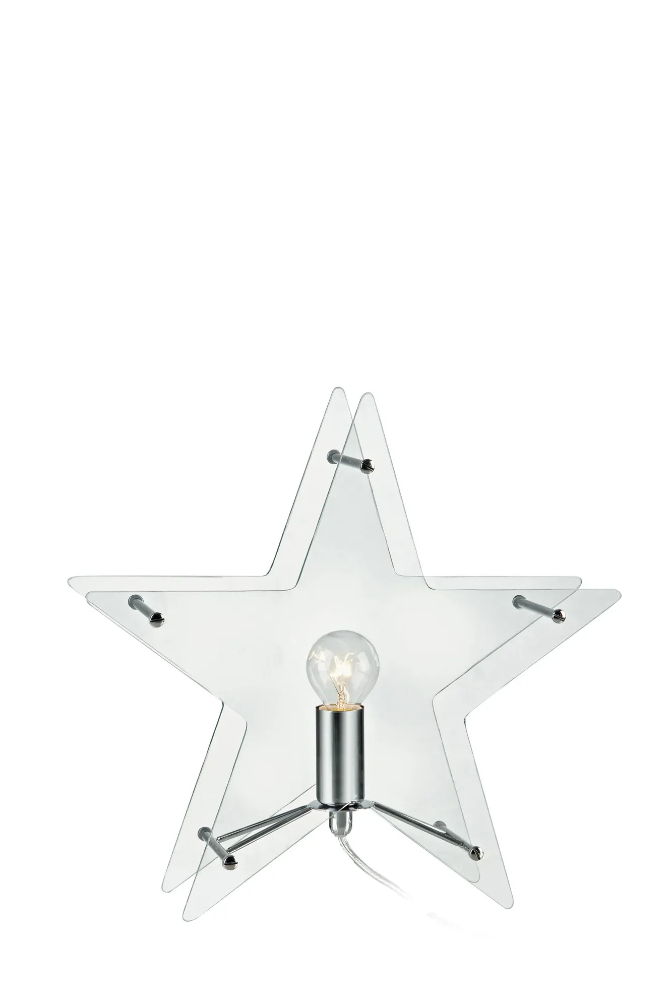 Stolní dekorativní svítidlo Markslöjd Klang v podobě hvězdy z čirého skla přináší do vašeho interiéru jedinečnou vánoční atmosféru i moderní design. Skleněné provedení s odhalenou žárovkou zajišťuje elegantní a jemně třpytivý efekt, který vynikne v každém obývacím pokoji, na slavnostně prostřeném stole či v dětských pokojích.