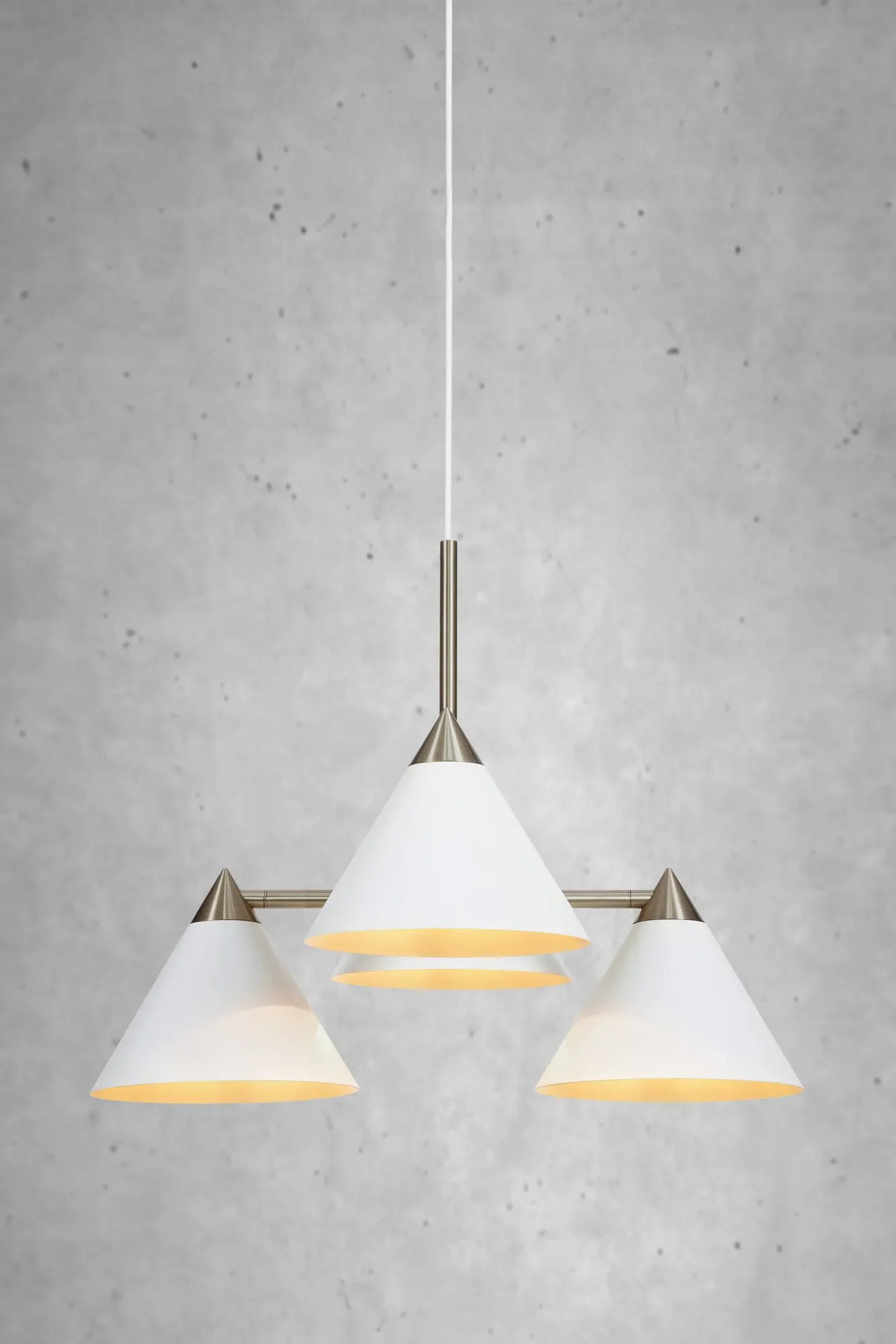 Závěsné svítidlo Markslöjd Klint ve stylové bílé barvě s detaily v ocelovém provedení je elegantním a zároveň funkčním řešením pro osvětlení jídelny, obývacího pokoje i pracovního prostoru. Navržené renomovanou designérkou Monikou Mulder zaujme čtyřmi nastavitelnými kuželovými stínidly, která umožňují nasměrovat světlo přesně tam, kde jej potřebujete. Svítidlo kombinuje minimalismus s industriálním nádechem a díky matné povrchové úpravě perfektně ladí jak do čistě moderních, tak i skandinávských interiérů.