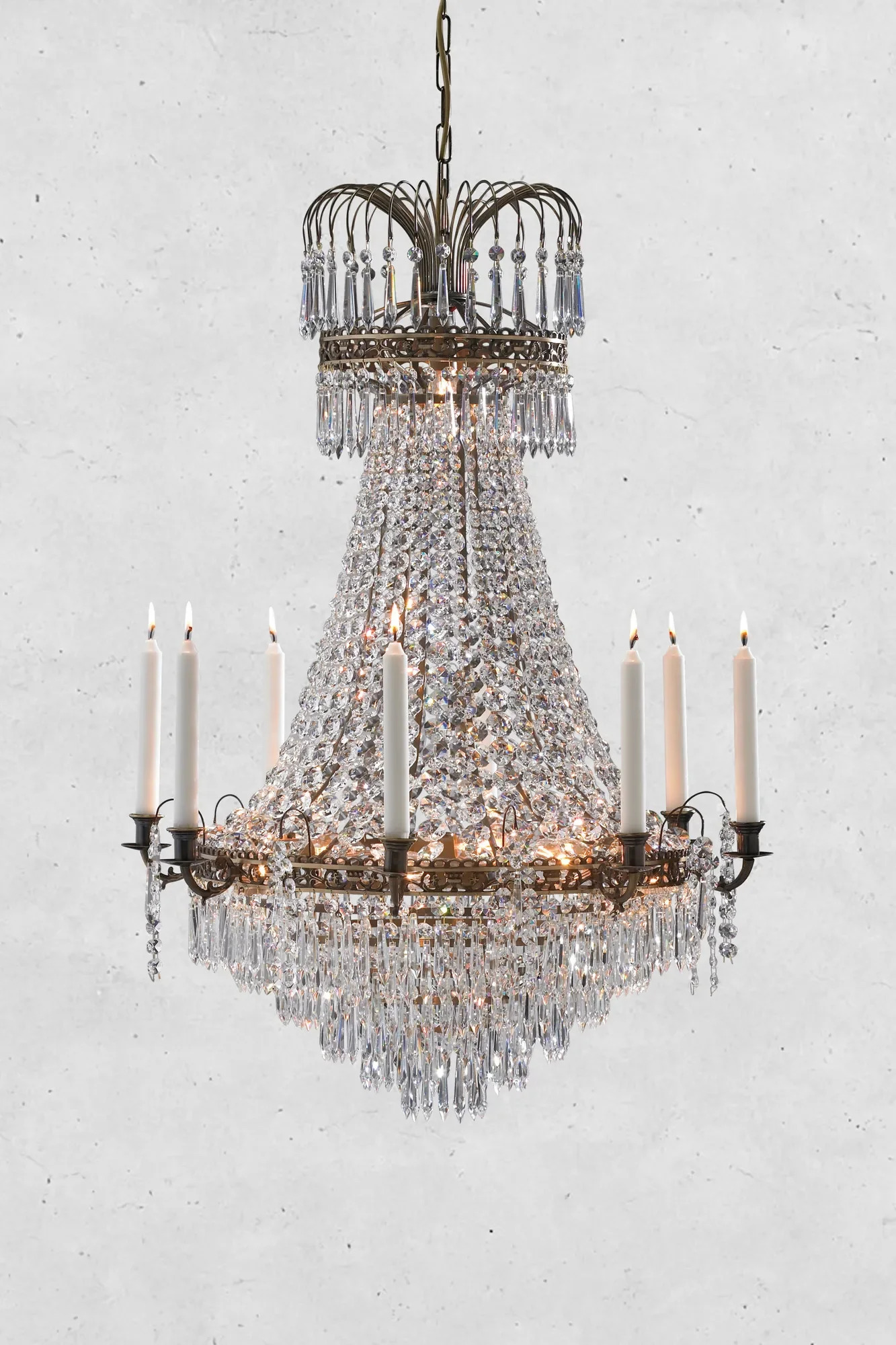 Läckö je navržen tak, aby perfektně zapadl nejen do historických interiérů, ale osloví i milovníky moderních kontrastů. Krásně vynikne nad velkým jídelním stolem, v salonku, vstupní hale i v prostorách s vysokými stropy. Atmosféru umocňuje brilantní třpyt křišťálových ověsů, které rozptylují světlo do všech směrů a vytvářejí luxusní efekt. Doporučujeme kombinovat s čirými LED žárovkami pro maximální zvýraznění lesku křišťálových prvků.