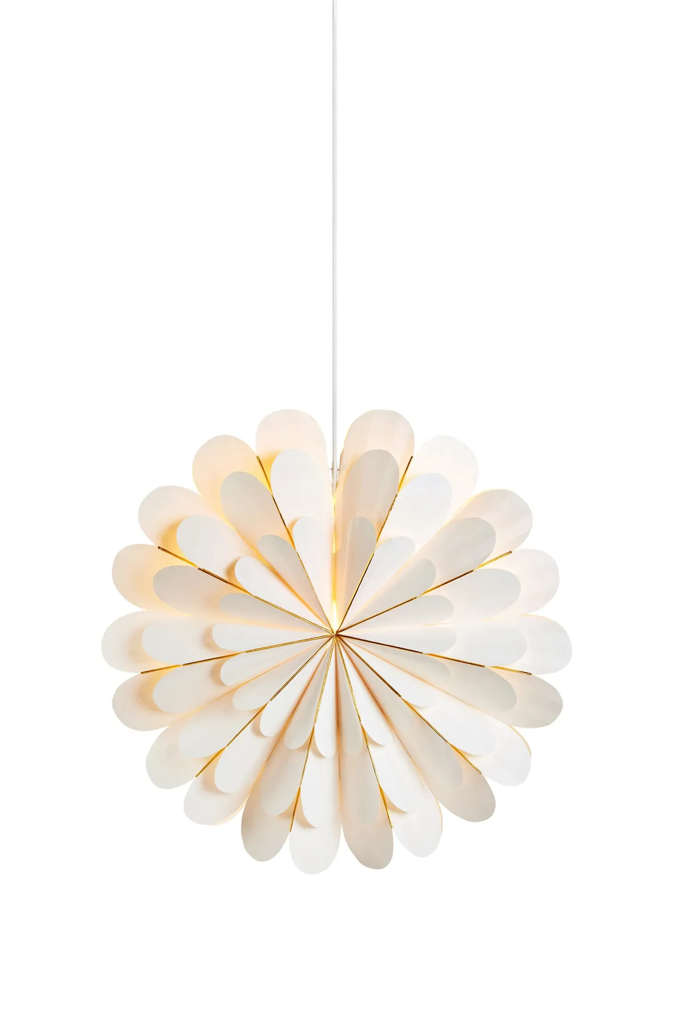 Marigold je ideální volbou pro všechny, kdo hledají originální a neotřelý dekorativní prvek do oken, obývacích pokojů či dětských pokojů. Papírové provedení propouští měkké rozptýlené světlo, které podtrhne sváteční atmosféru, ale zároveň nepůsobí rušivě. Kombinace bílé a zlaté je nadčasová a snadno ji sladíte s ostatními dekoracemi.