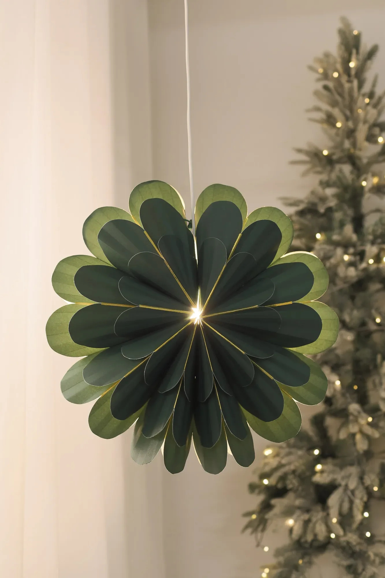 Markslöjd Marigold zelená hvězda 45 cm – závěsné okno svítidlo z papíru