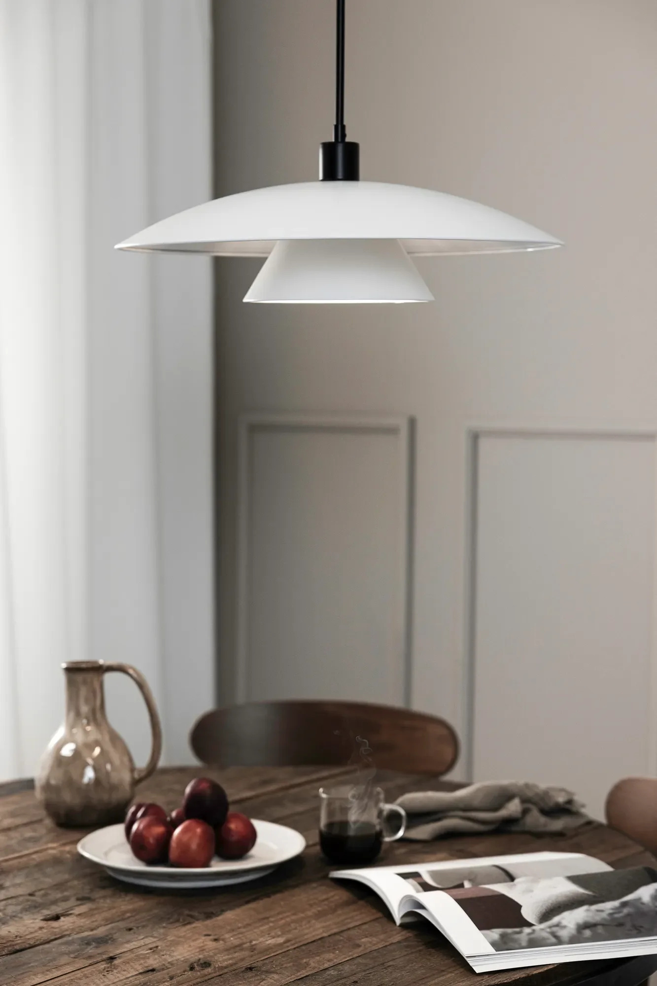 Závěsné svítidlo Markslöjd Millinge v bílé barvě je esencí skandinávského designu, který vnáší do interiéru čistotu, jednoduchost a funkčnost. Díky svému nadčasovému tvaru s matně bílým stínidlem a kontrastním černým kabelem působí svítidlo decentně, avšak velmi stylově. Ideálně se hodí nad jídelní či pracovní stůl, kde poskytuje rovnoměrné a příjemné osvětlení díky dvojitému stínidlu, které rozptyluje světlo přesně tam, kde je potřeba.