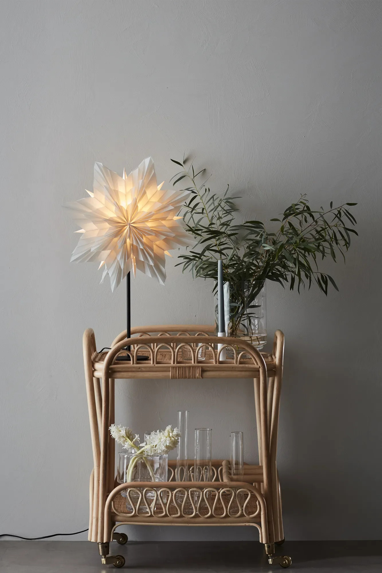 Vneste do svého interiéru kouzelnou atmosféru Vánoc s papírovou hvězdou Markslöjd Neela v elegantní šedé barvě na subtílním kovovém podstavci. Tento designový solitér se stane nepřehlédnutelným prvkem na vašem stole, parapetu nebo komodě, a to nejen během svátečního období. Díky preciznímu květinovému vzoru vyniká originálním vzhledem a vytváří příjemné, rozptýlené světlo.